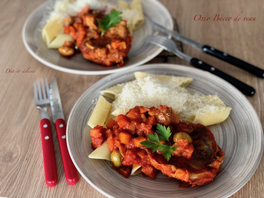 osso bucco, jarret, veau, osso bucco de veau, tomate, carottes , plat mijoté, cuisine italienne, olives