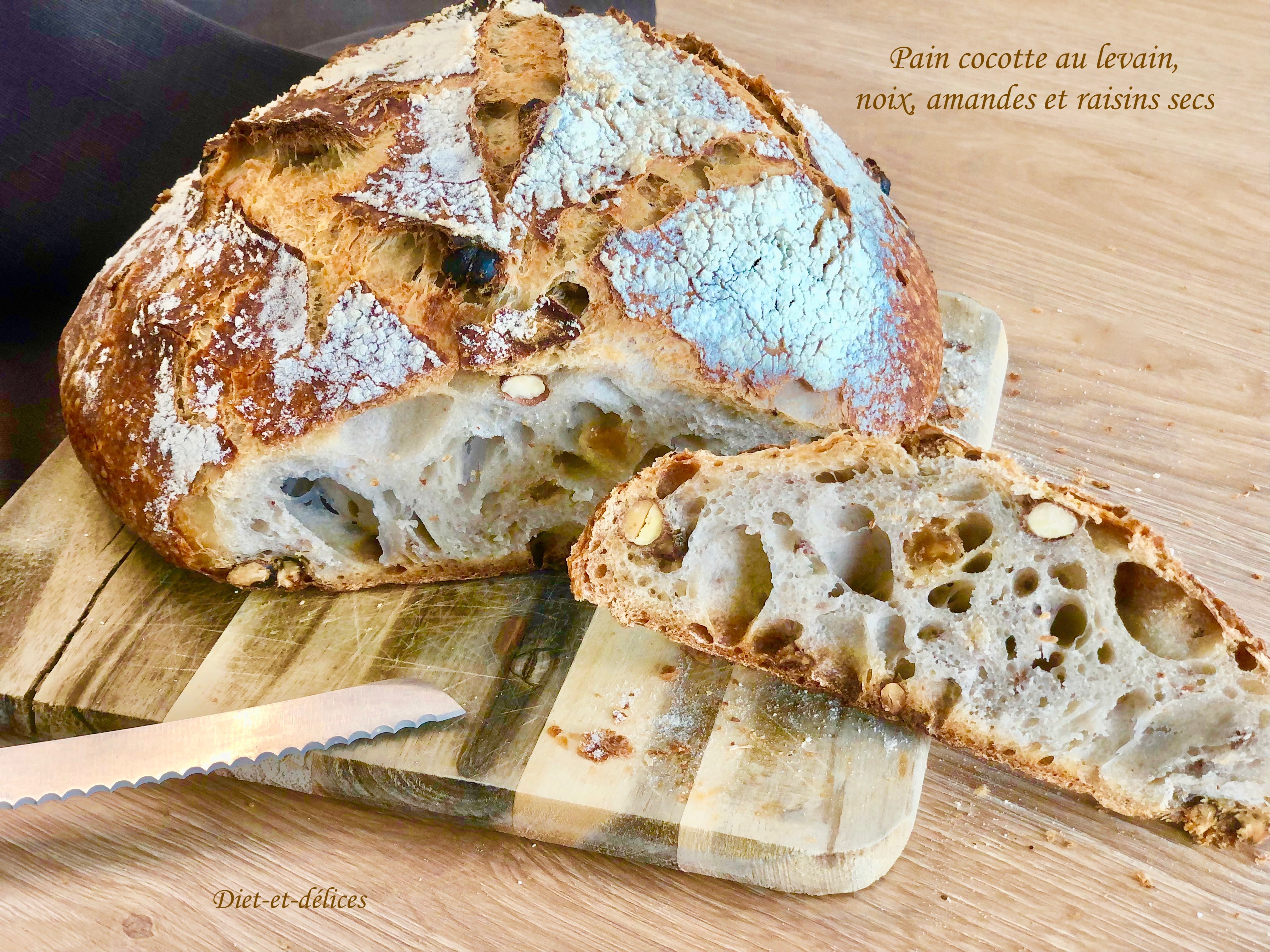 pain, pain cocotte, levain , noix, amandes, raisins secs, pain, pain cocotte, levain , noix, amandes, raisins secs