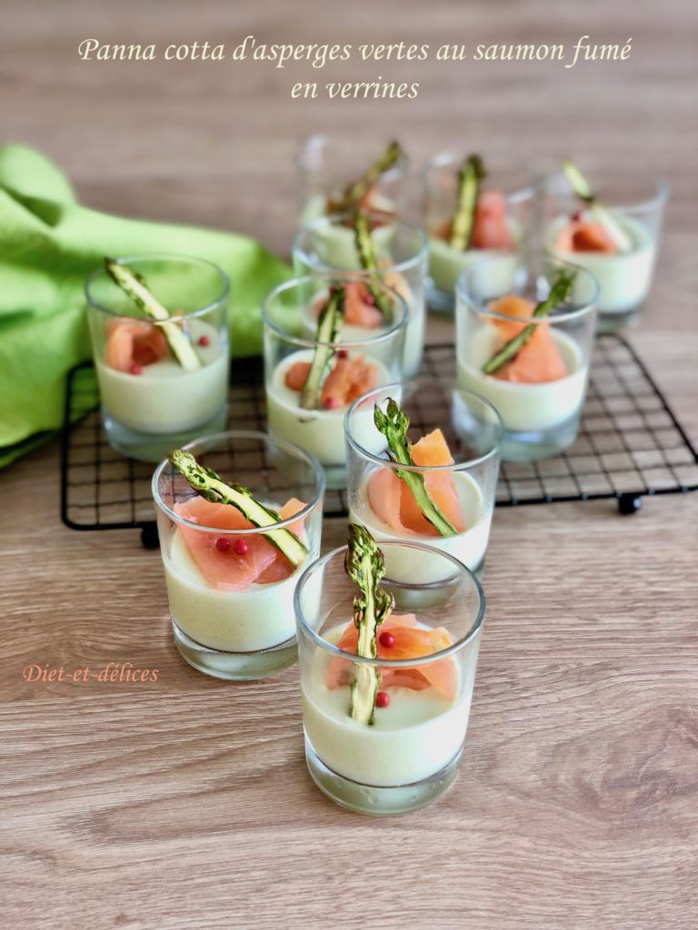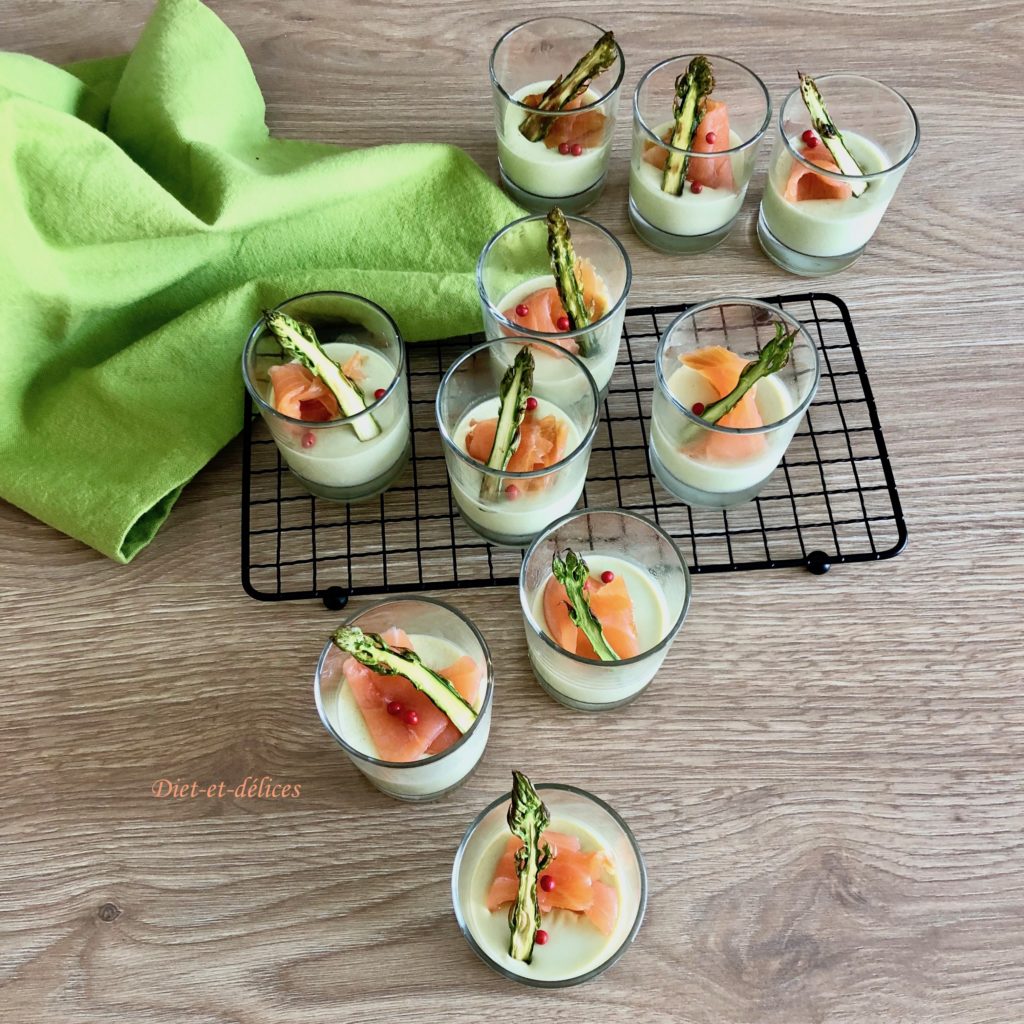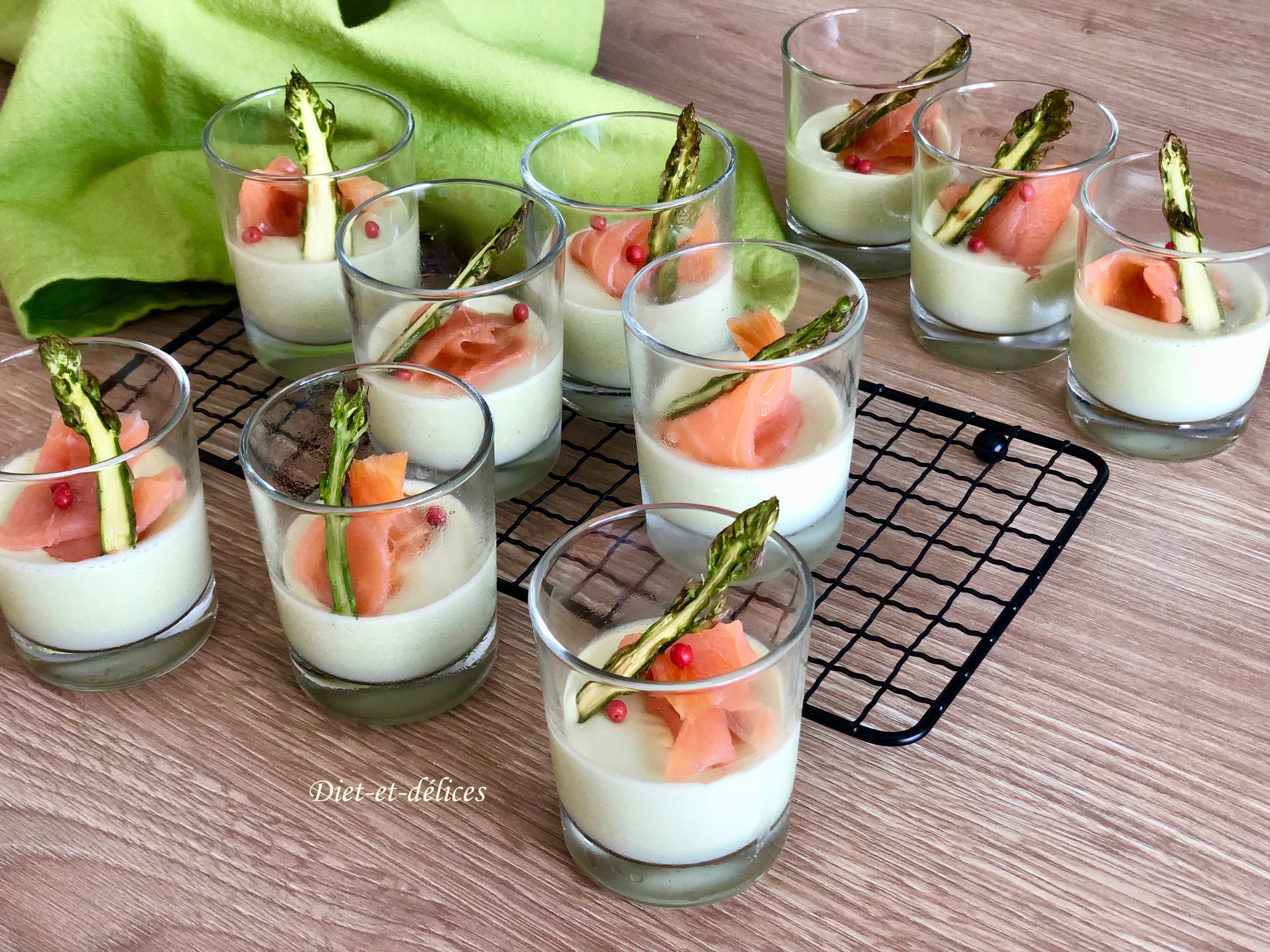 apéro, apéritif, verrine, panna cotta, asperges, saumon, panna cotta d’asperges, asperges vertes, saumon fumé