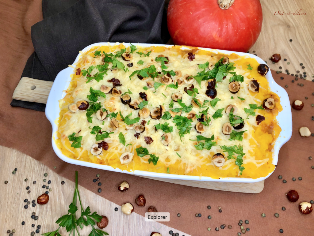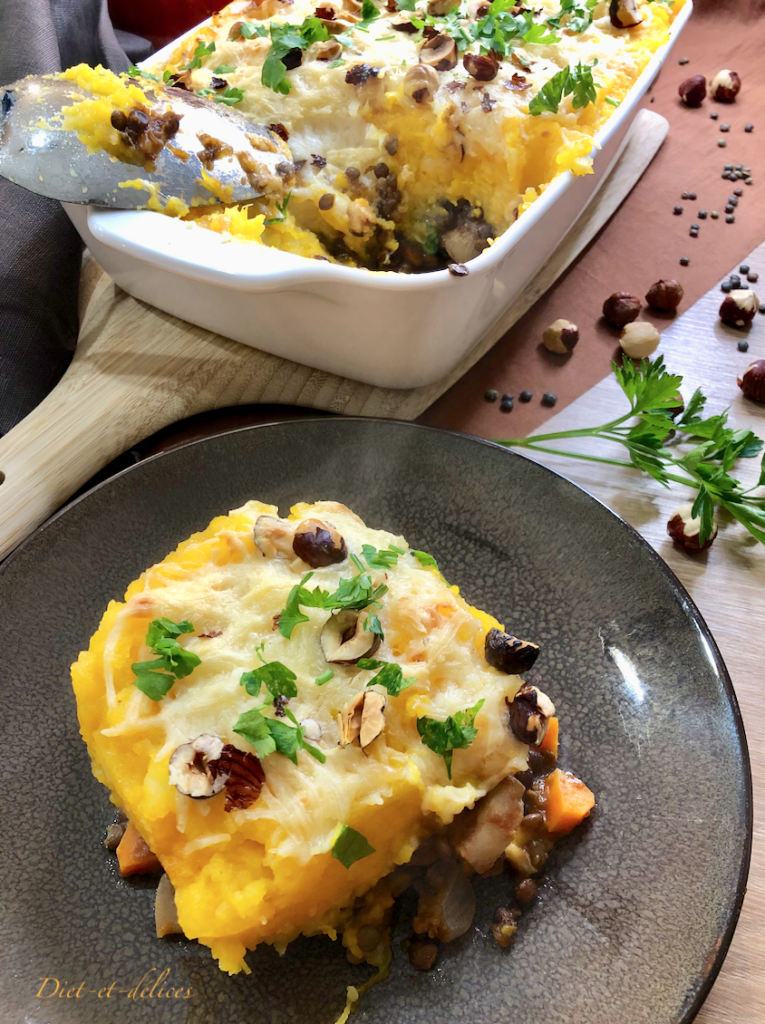 hachis parmentier, potimarron, pommes de terre , hachis parmentier végétarien, lentilles vertes, lentilles
