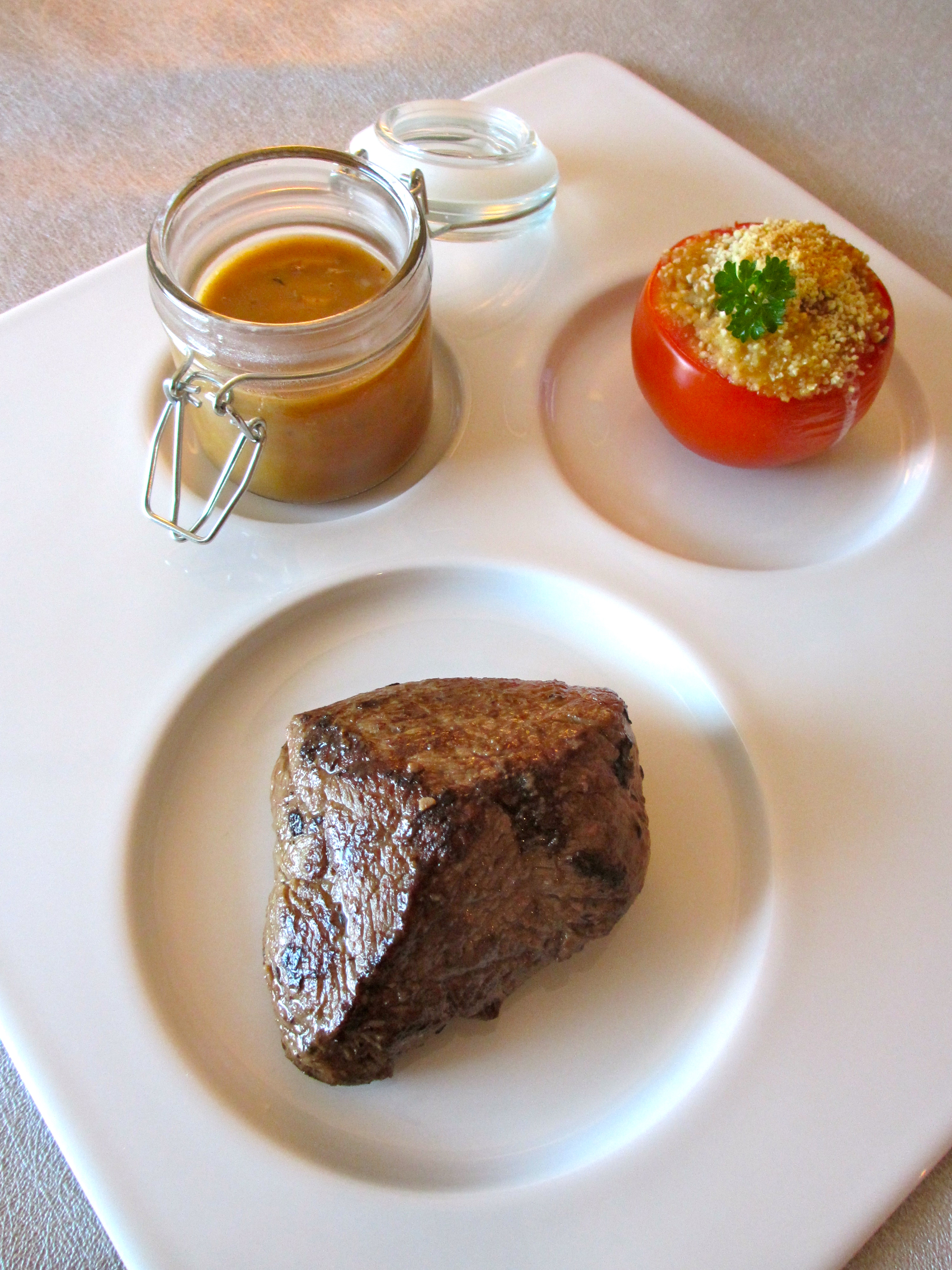 • Dresser la sauce dans un petit pot accompagné de la viande.