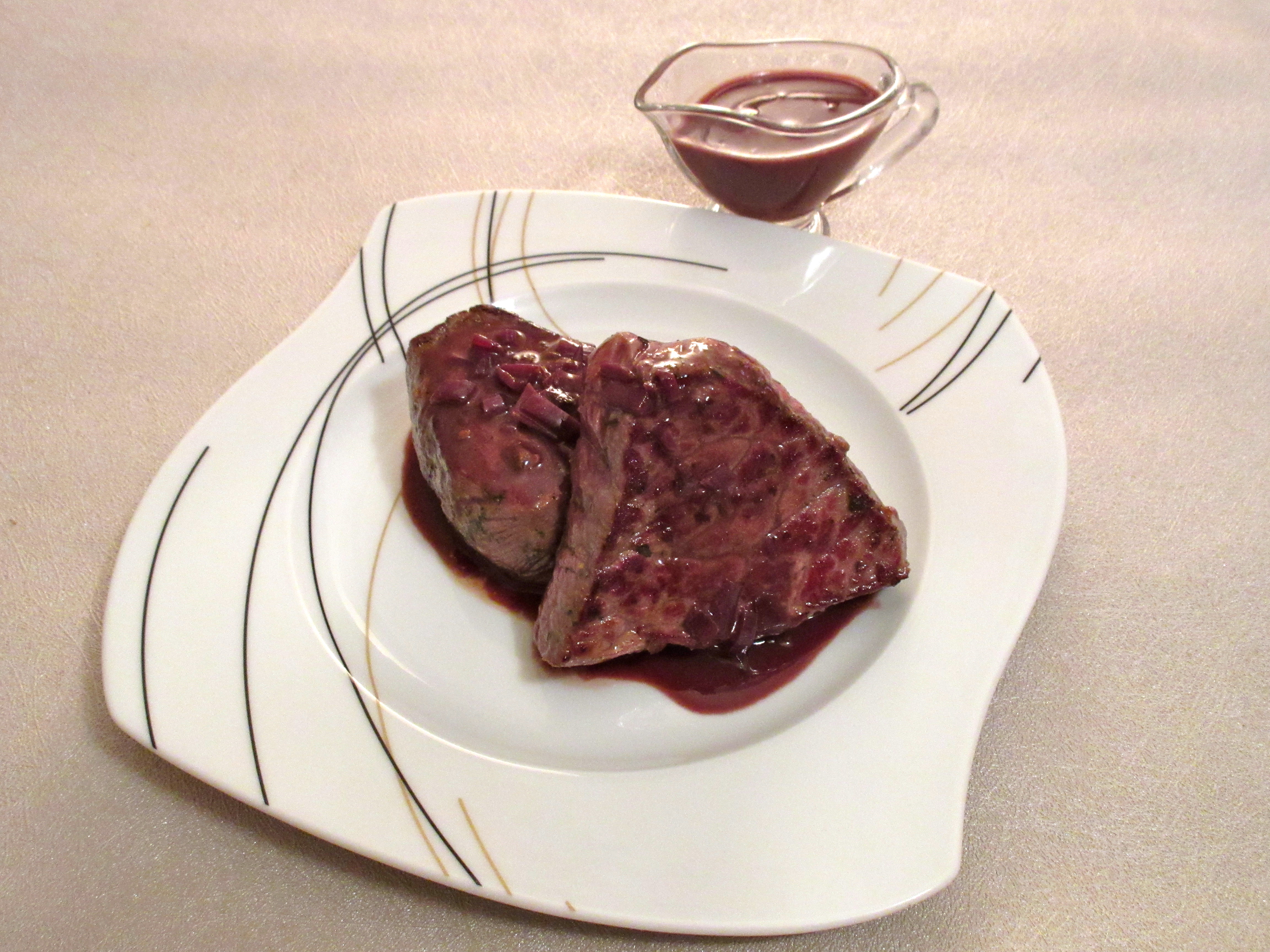 bison, pavés de bison, viande d’exception, sauce, sauce au vin rouge, sauce au chocolat, sauce au vin rouge et chocolat, chocolat, gibier, viande, sauce pour gibier, vin rouge