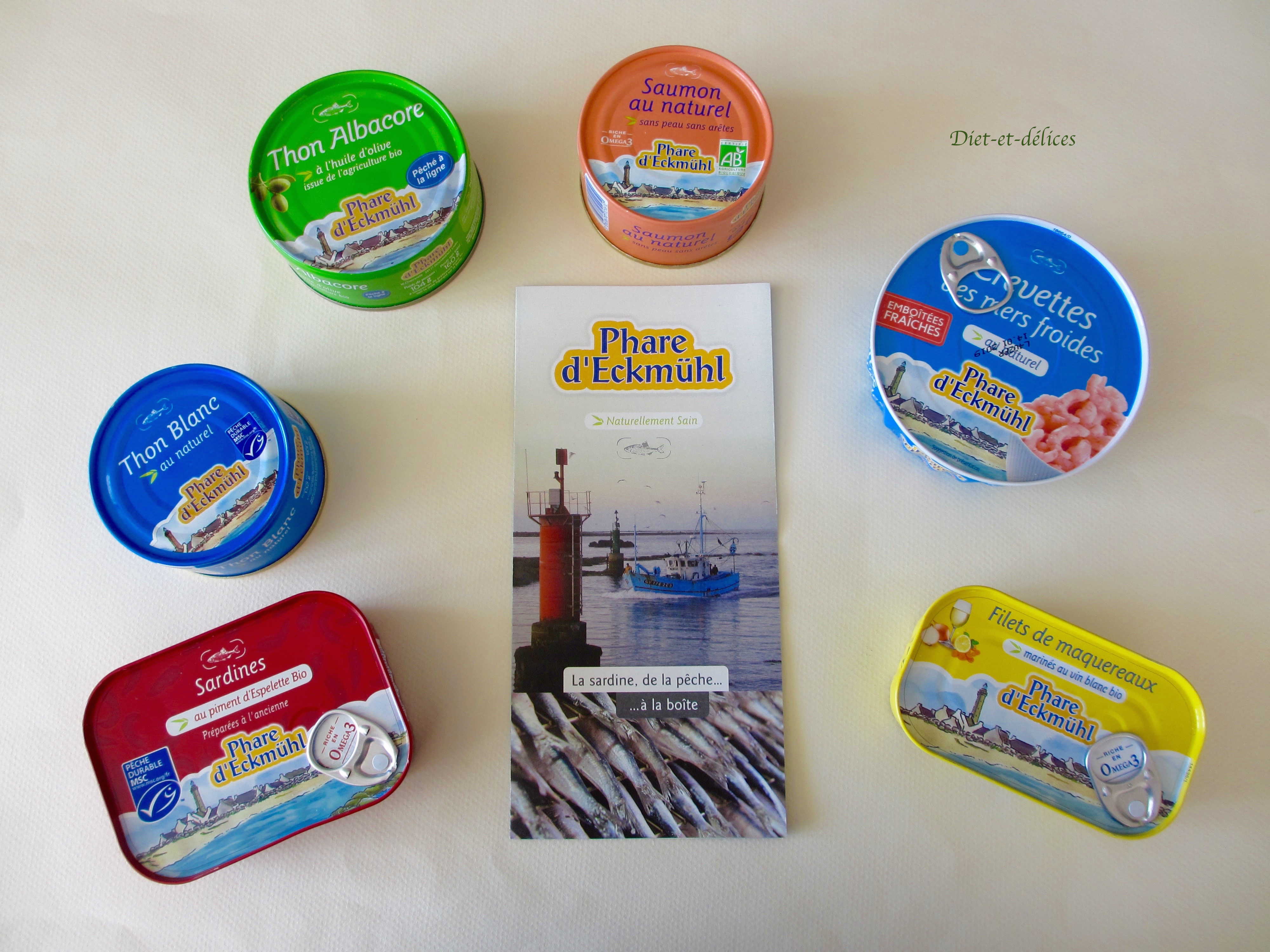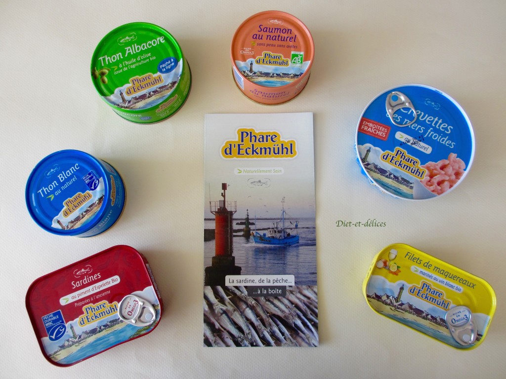 Le phare d’Eckmühl propose des conserves de poissons issus d’une pêche responsable. Parmi la large gamme de produits, vous pouvez retrouver : sardines, thon albacore, thon germon, maquereaux, filets de merlu, poissons bio, foie de morue et crevettes. Ces gammes se déclinent avec des préparations au naturel ou cuisinées (à l’huile d’olive, au citron, au vin blanc, à la tomate, aux algues, au piment d’Espelette…). Certains produits vous sont également proposés avec une teneur réduite en sel.
