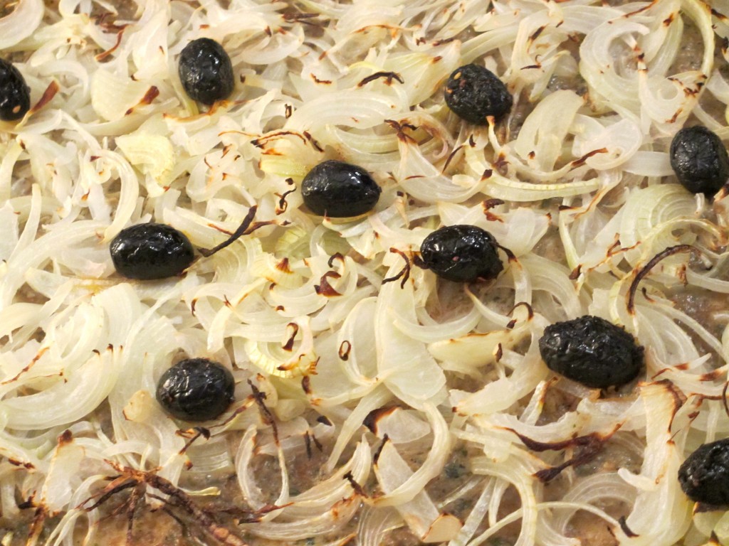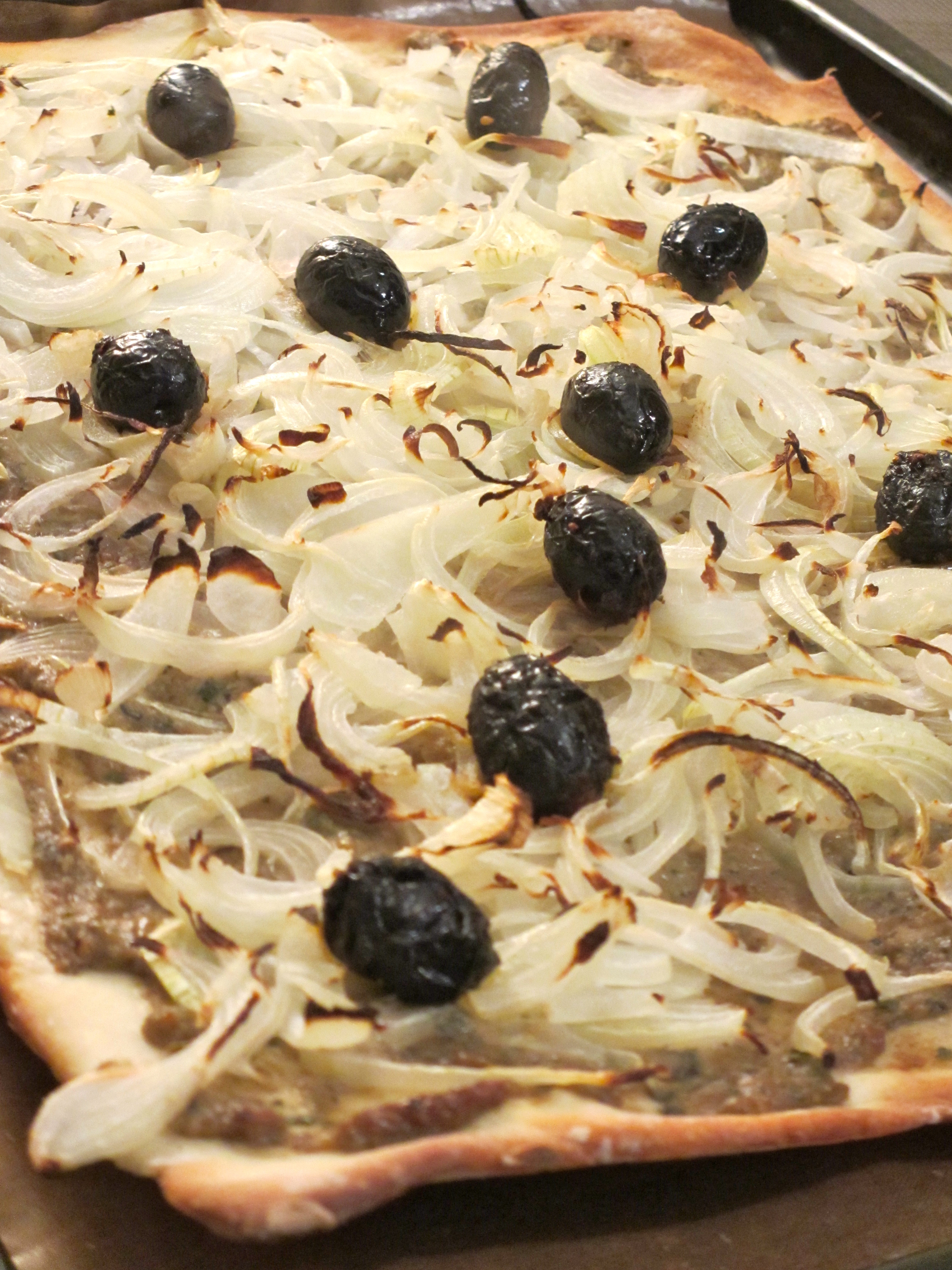 pissaladière, pizza,pizza aux oignons, oignons, anchois, anchoïade, olives, olives noires,provence