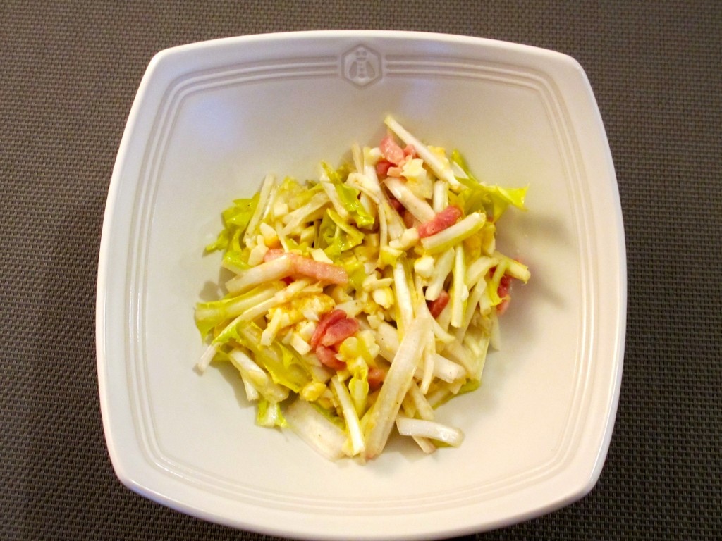 - Ajouter la pissenlit. Y déposer les lardons. Déglacer la poêle avec 1 cuillère à soupe de vinaigre puis la verser sur la salade.
