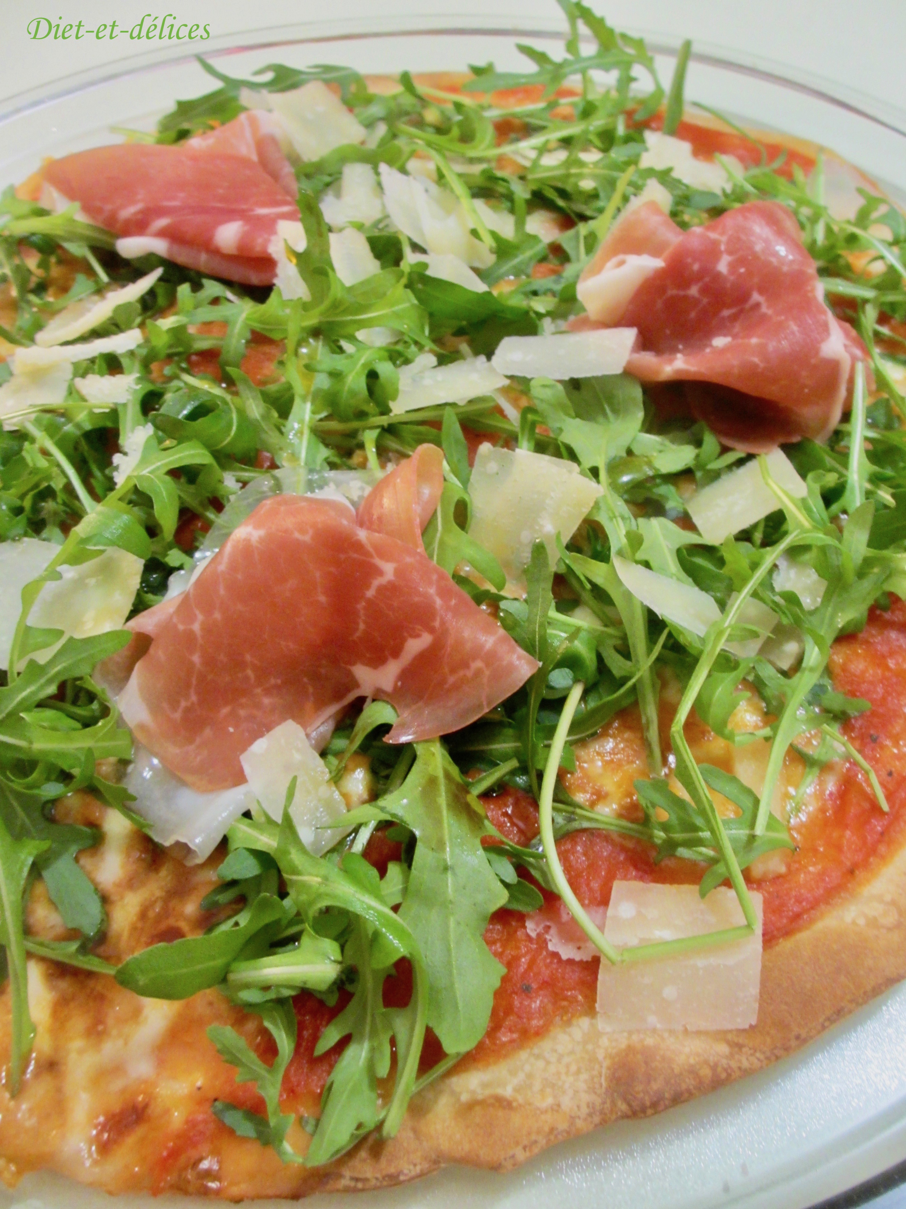 pizza, roquette, jambon, pizza au jambon cru, jambon cru, jambon fumé, sauce tomate, pâte à pizza, parmesan, mozzarella, cuisine italienne