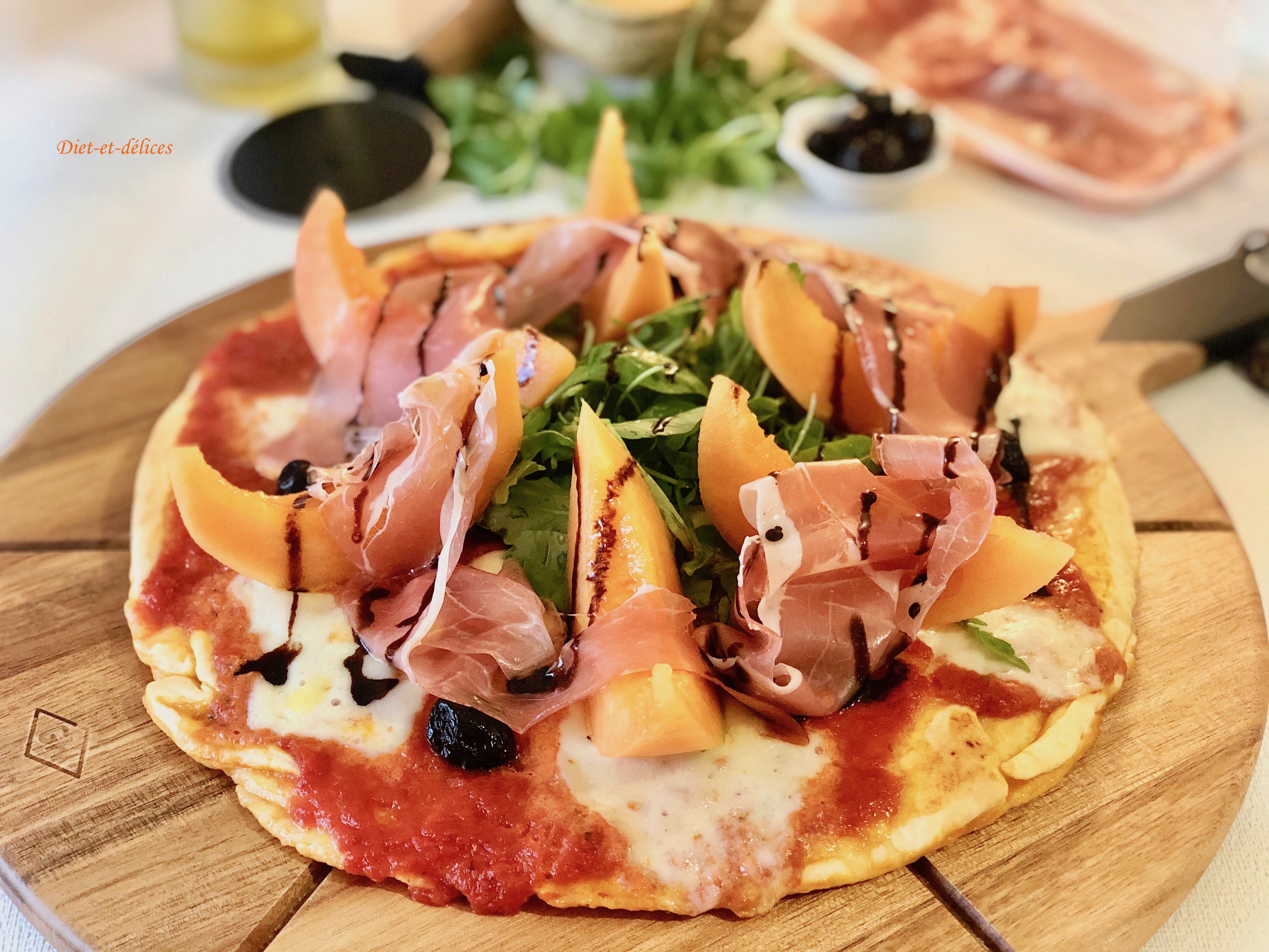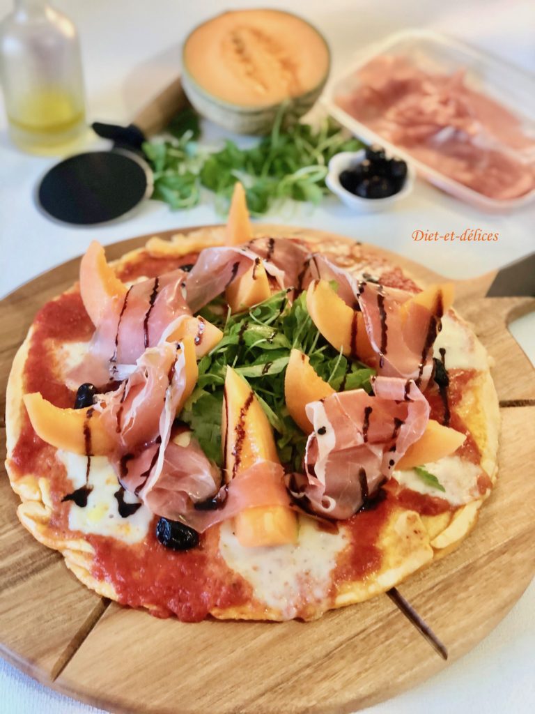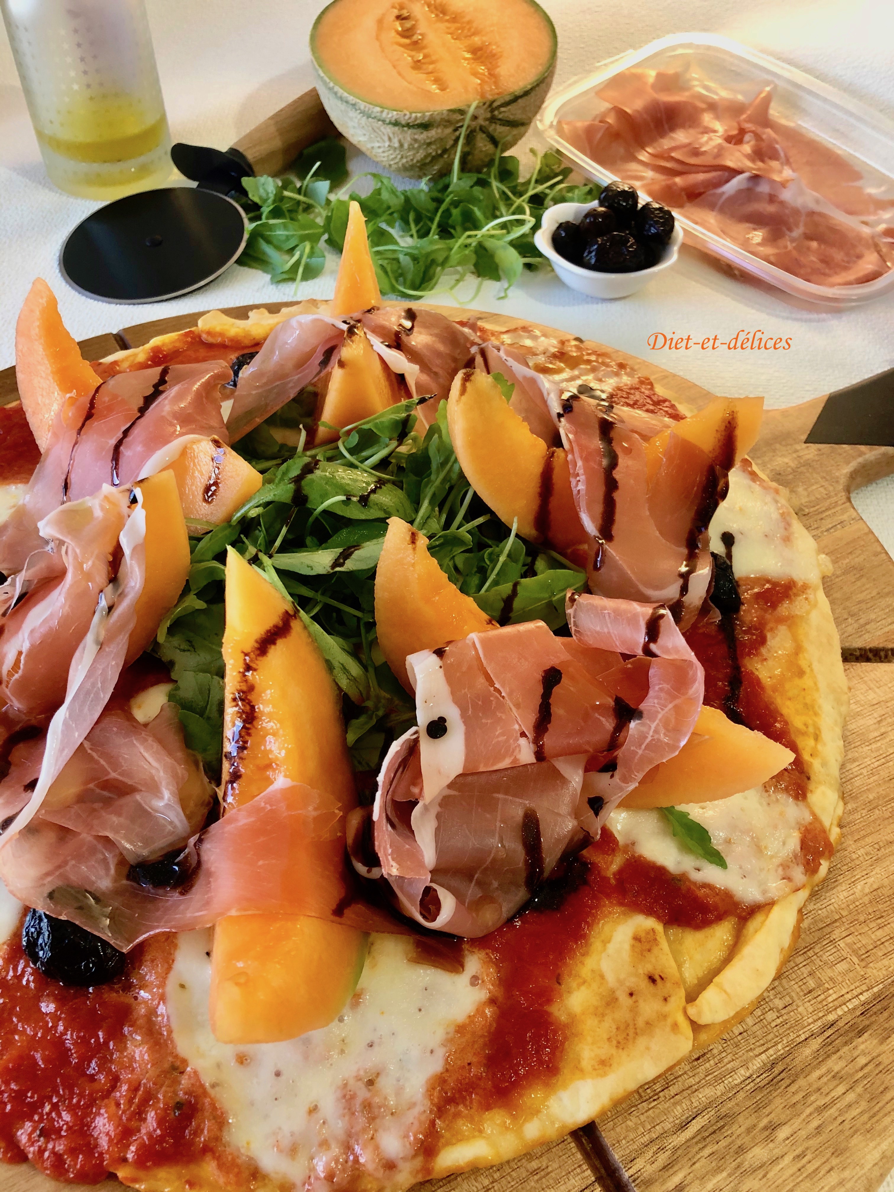 pizza, melon, jambon, pizza au melon, roquette, jambon cru, jambon fumé, mozzarella, sauce tomate