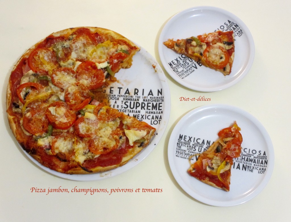 cuisine du monde, cuisine italienne, pizza, jambon, jambon blanc, pizza au jambon, poivrons, coulis de tomates, pizza au jambon et champignons, champignons, champignons frais, origan, pecorino, pizza gourmande, plat complet