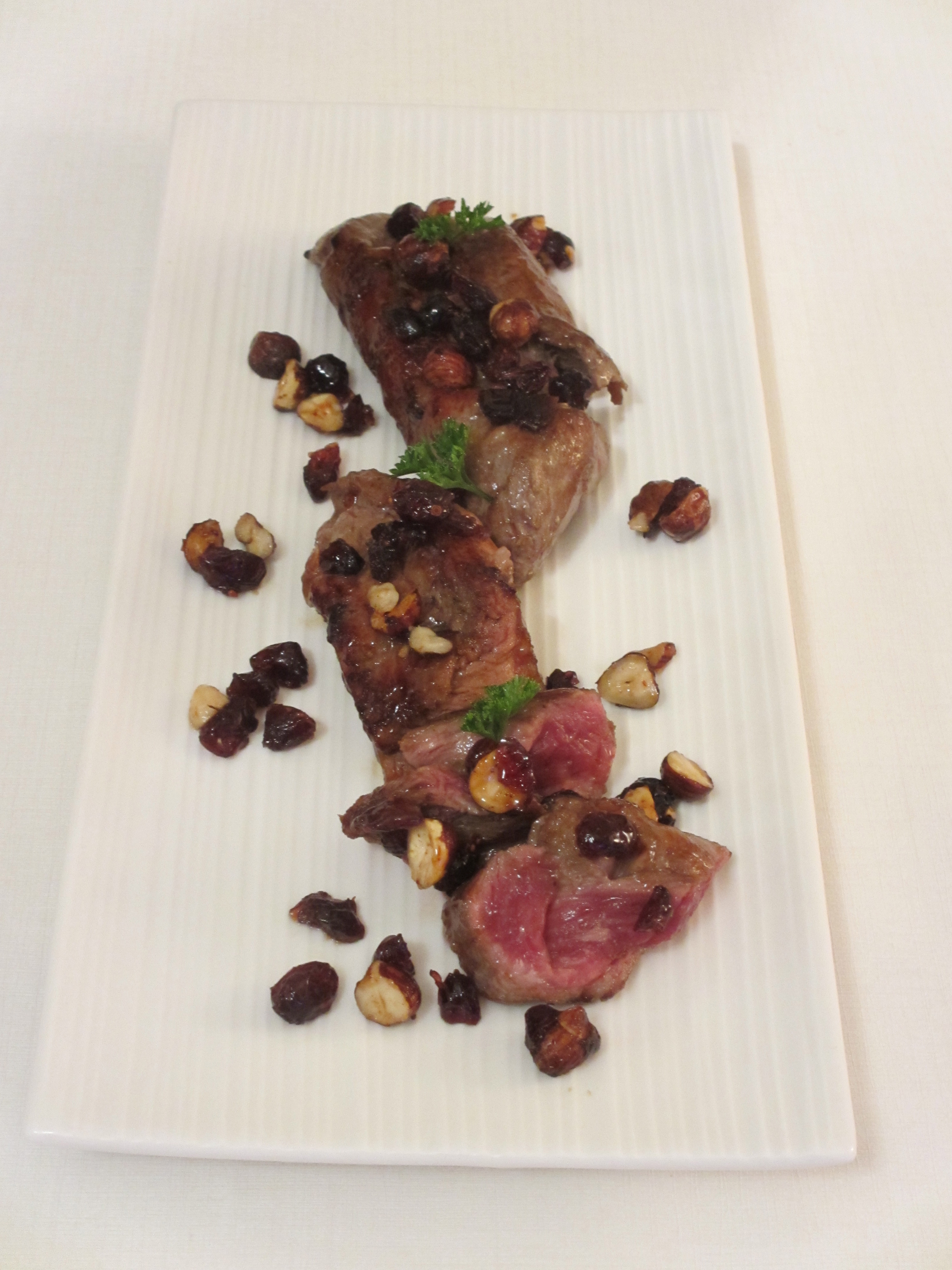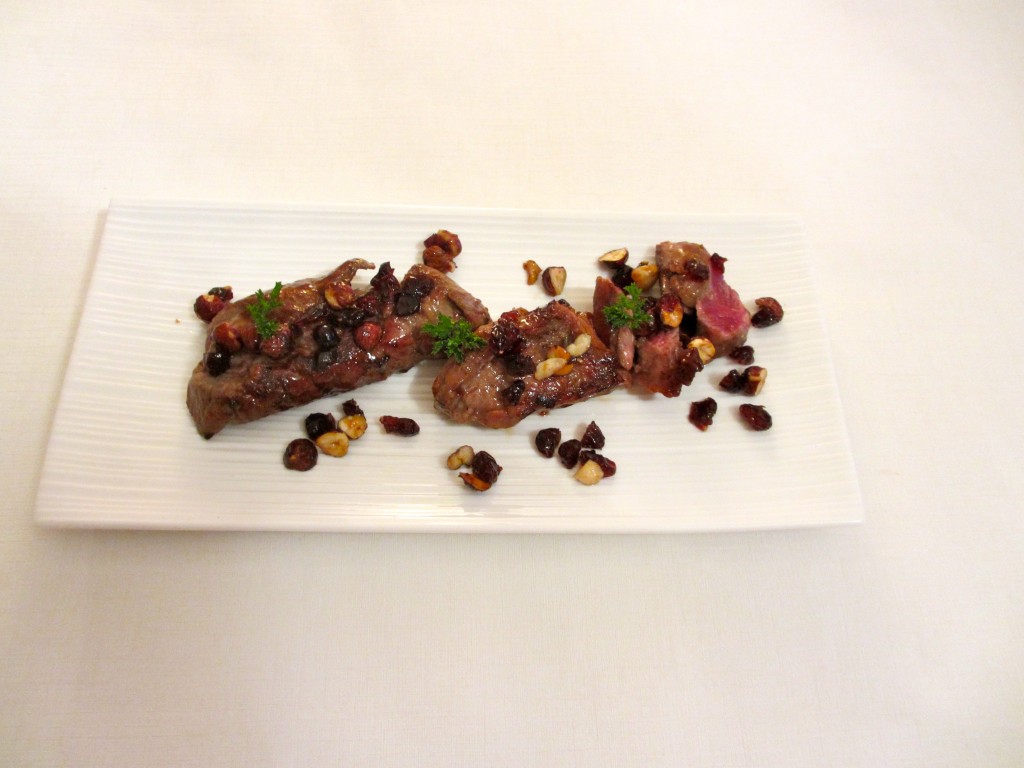 pluma, pluma de porc, porc ibérique, porc, viande, sucré salé canneberges, cranberry, sirop d’érable, huile d’olive, noisettes, repas de fête