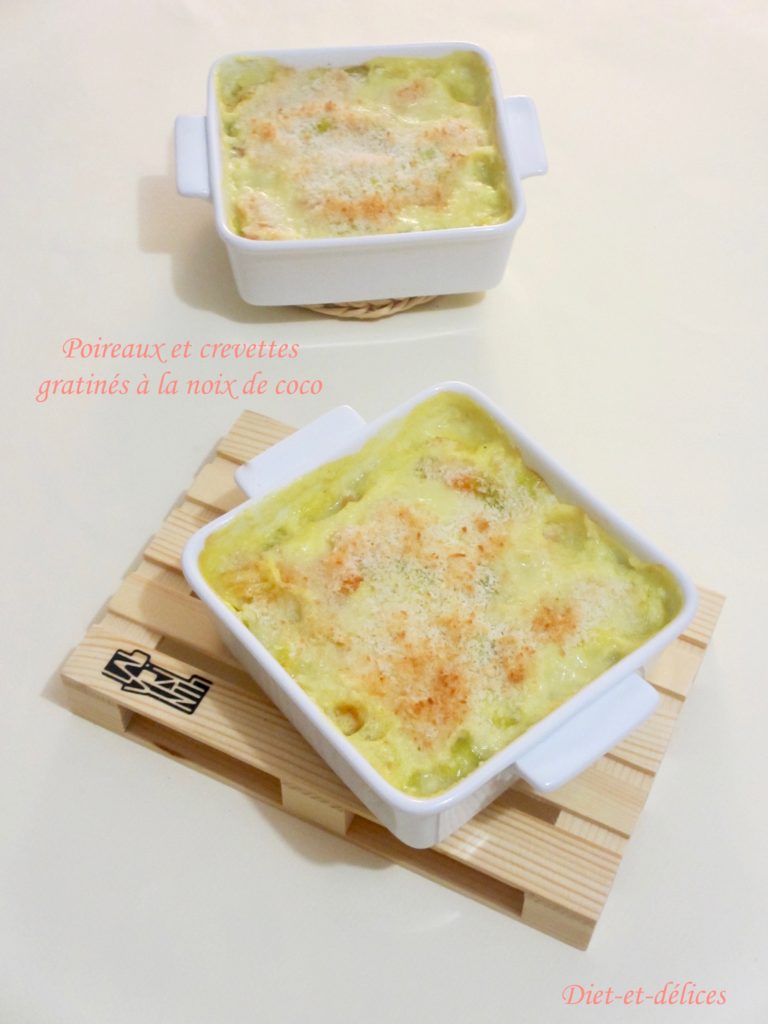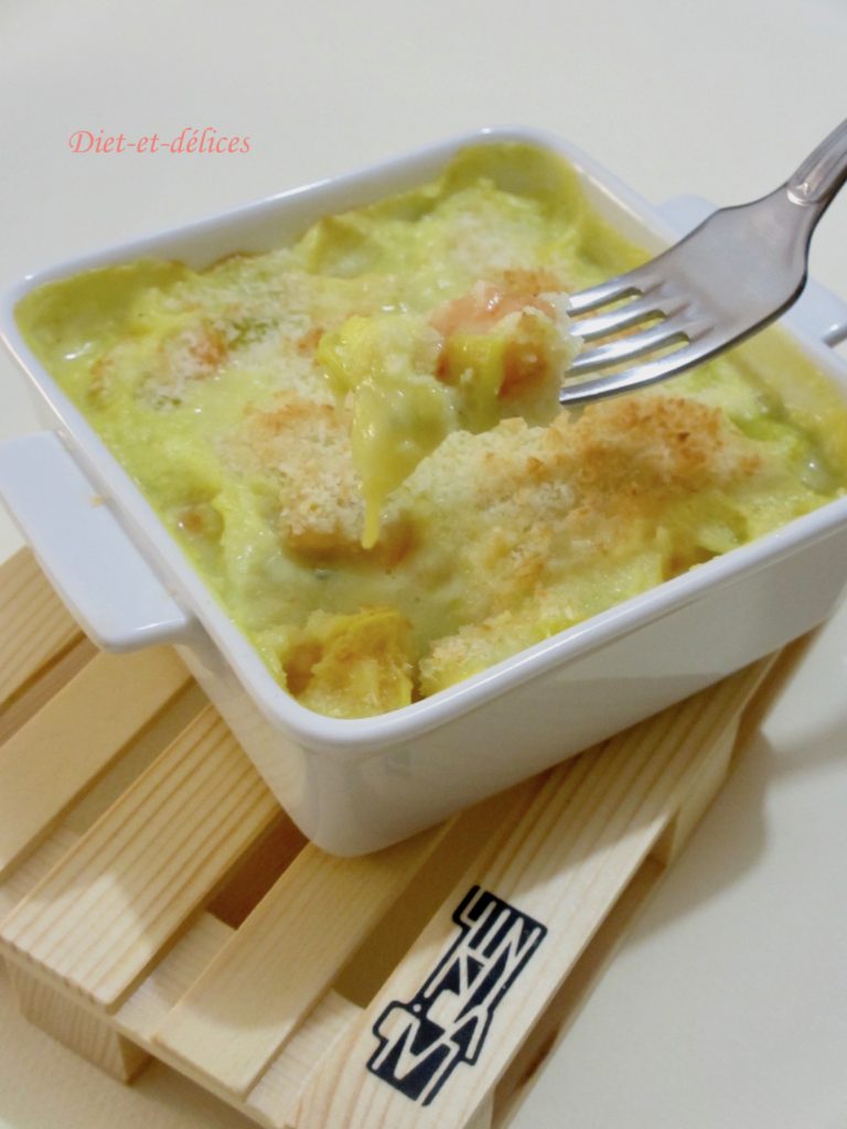 gratin, poireaux, crevettes, gratin de poireaux, noix de coco, béchamel, curry, diététique, béchamel allégée