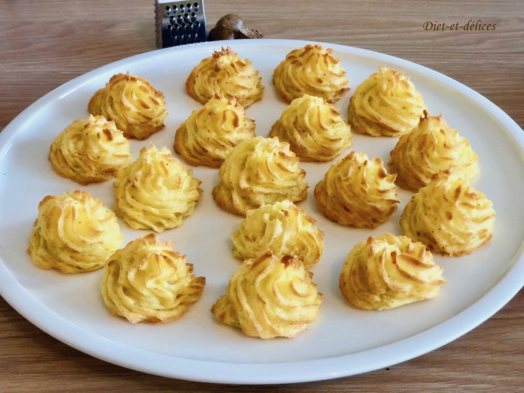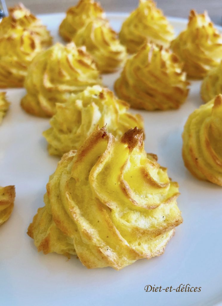 Souvent servies lors des fêtes, les pommes duchesse apportent un côté très esthétique à la présentation d’une assiette, grâce à leur joli forme.