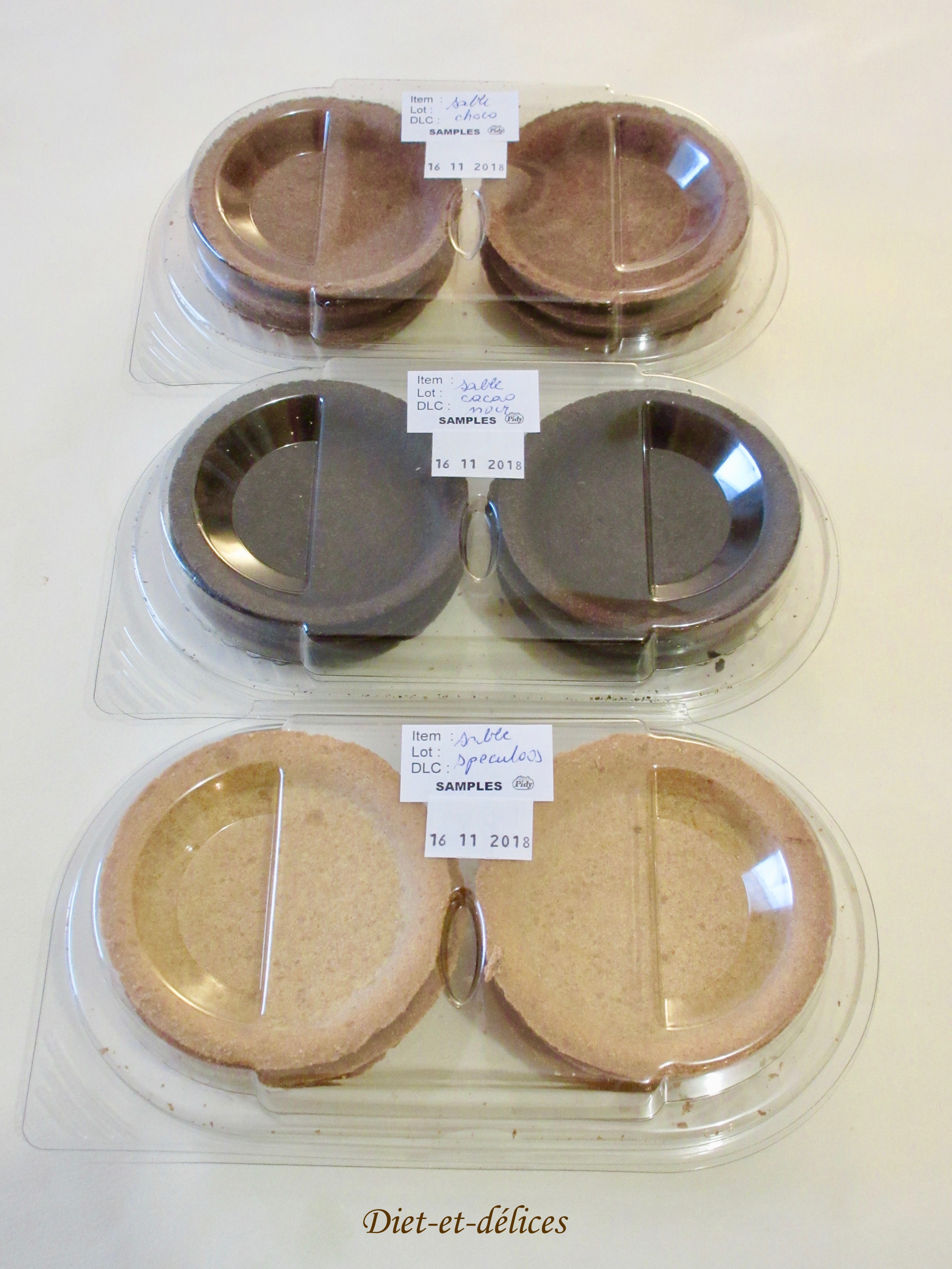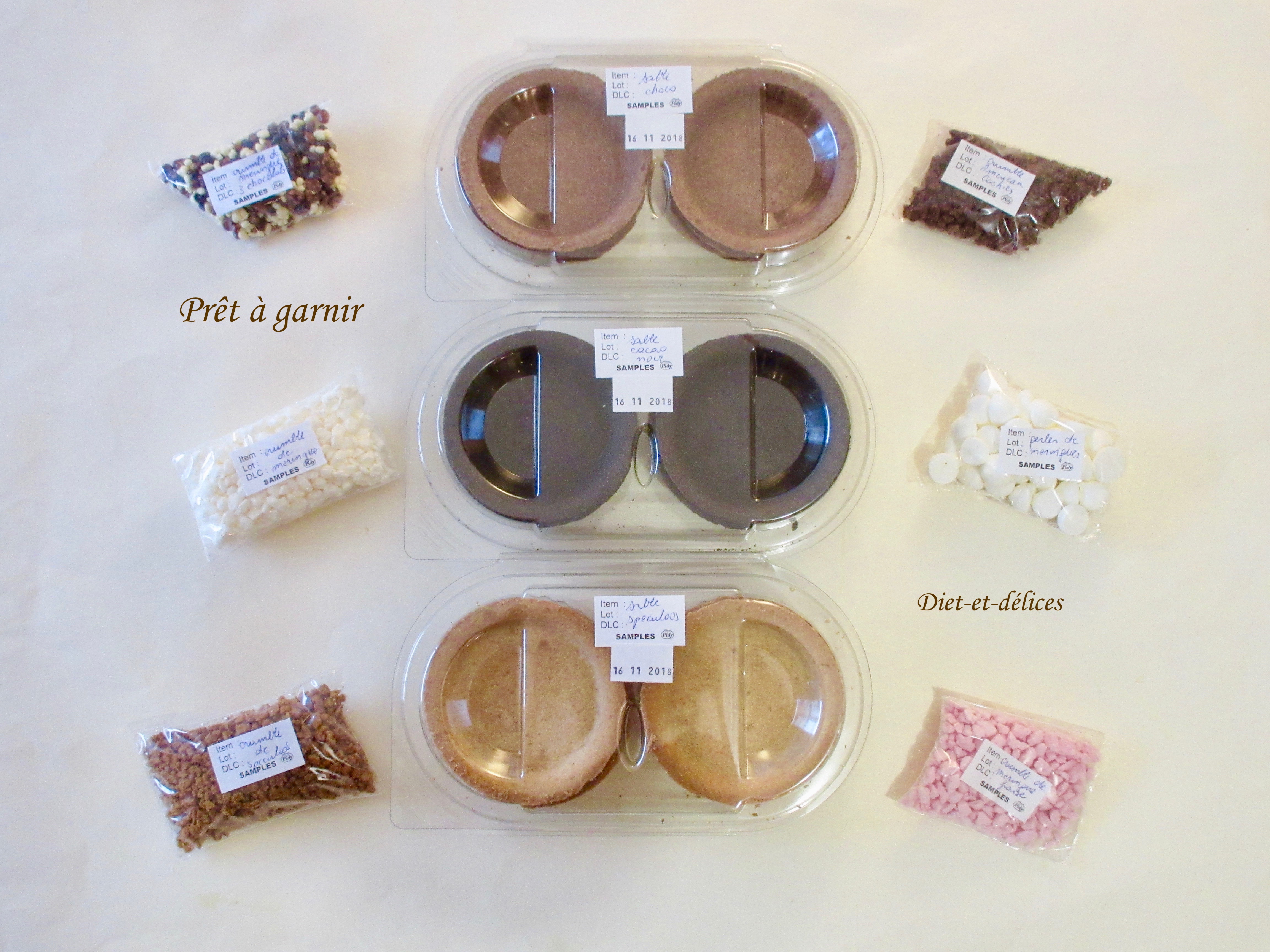 Je vous présente aujourd’hui les nouveautés de Prêt à garnir : des fonds de tartelettes délicieusement parfumés. Résistances à la détrempe, les tartelettes peuvent aussi être surgelées une fois garnies. D’un diamètre de 8,5 cm, ils se déclinent sous trois parfums :