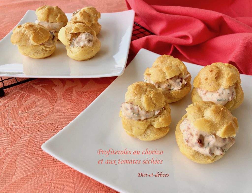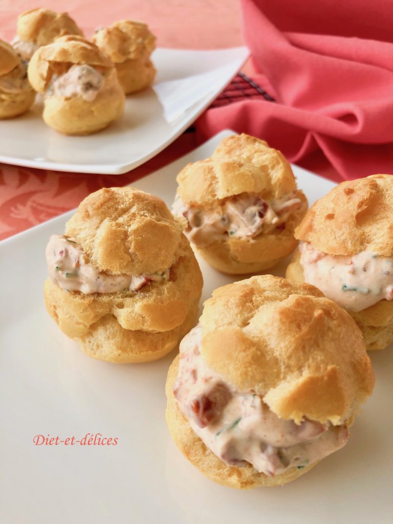 profiteroles, choux salés, apéro, chorizo, petits suisses, apéritif, tomates séchées, paprika fumé