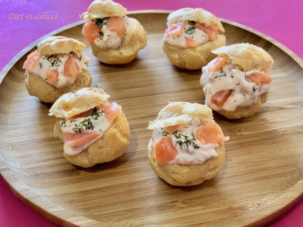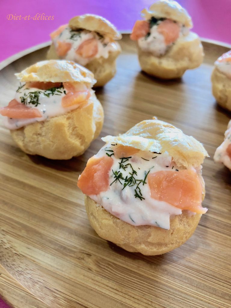 péro, apéritif, choux, profiteroles, saumon, saumon fumé, aneth, citron, petit suisse