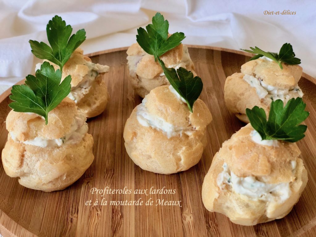 profiteroles, choux, apéro, profiteroles salés, lardons, moutarde, fromage blanc, apéritif