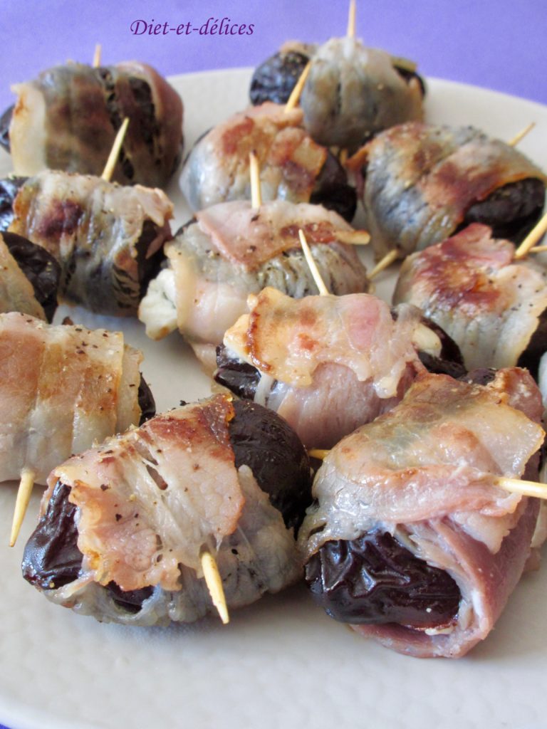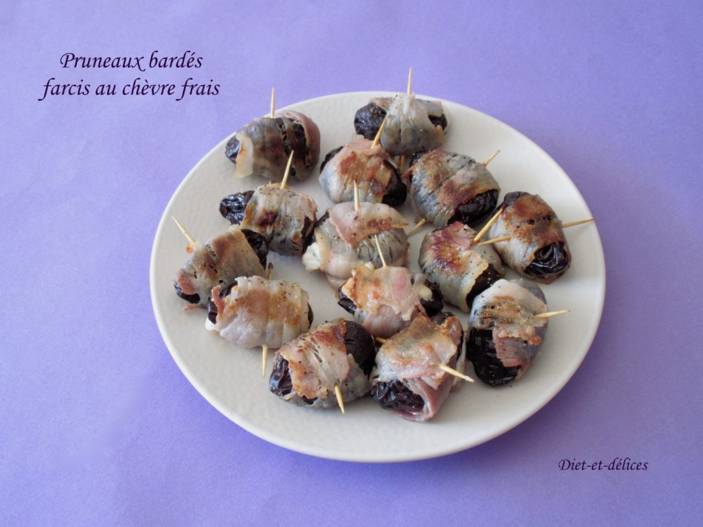 apéro, apéritif, pruneaux, bandes de lard, fromage de chèvre, pruneaux farcis