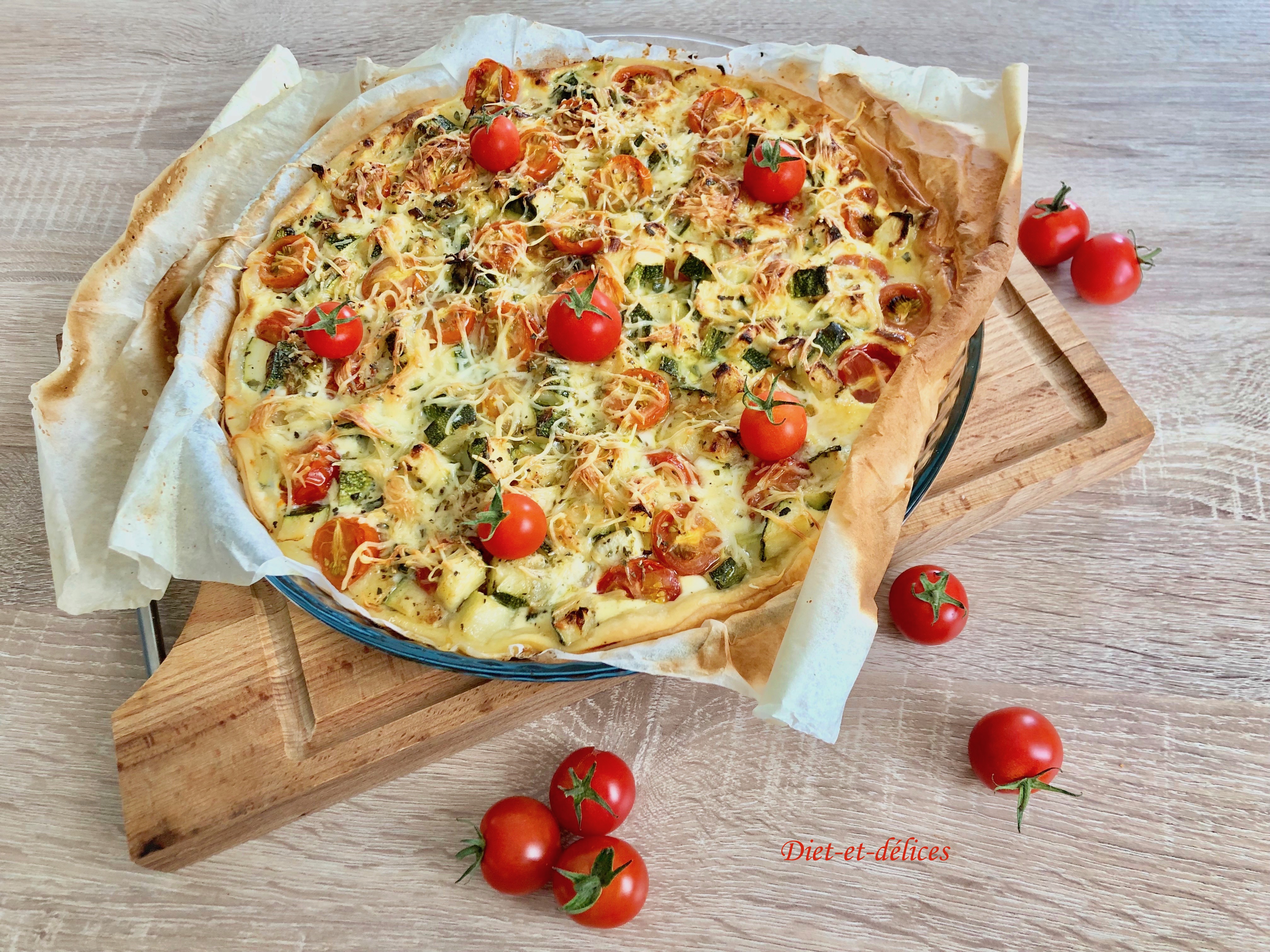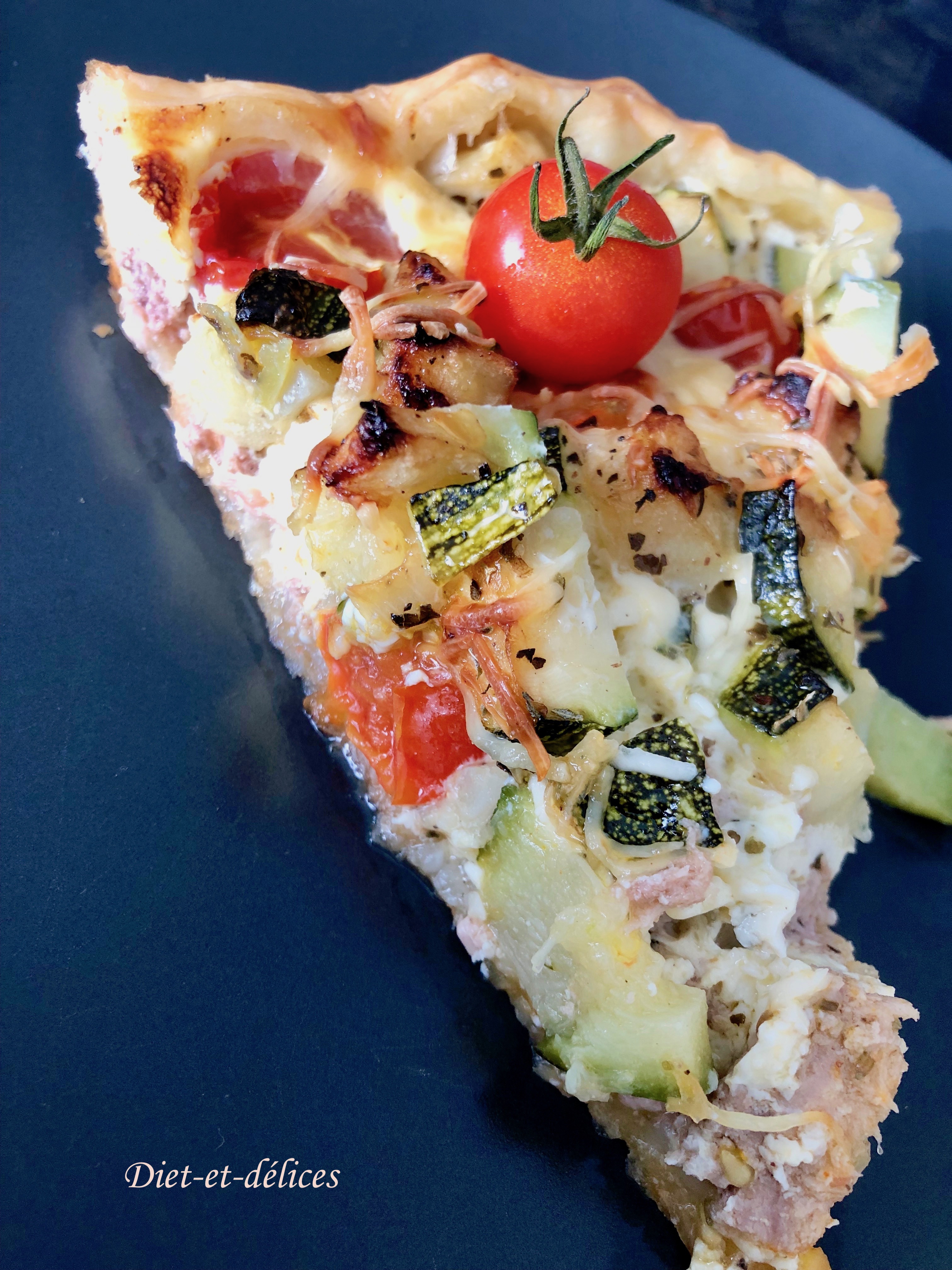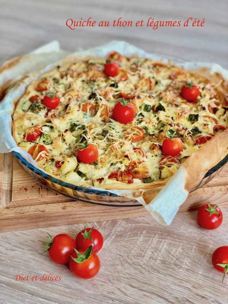 quiche, tarte salée, thon, tomates cerises, courgette, plat complet