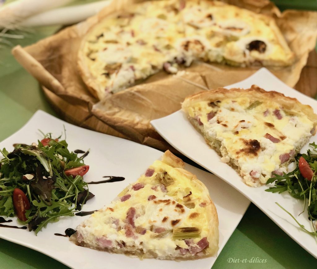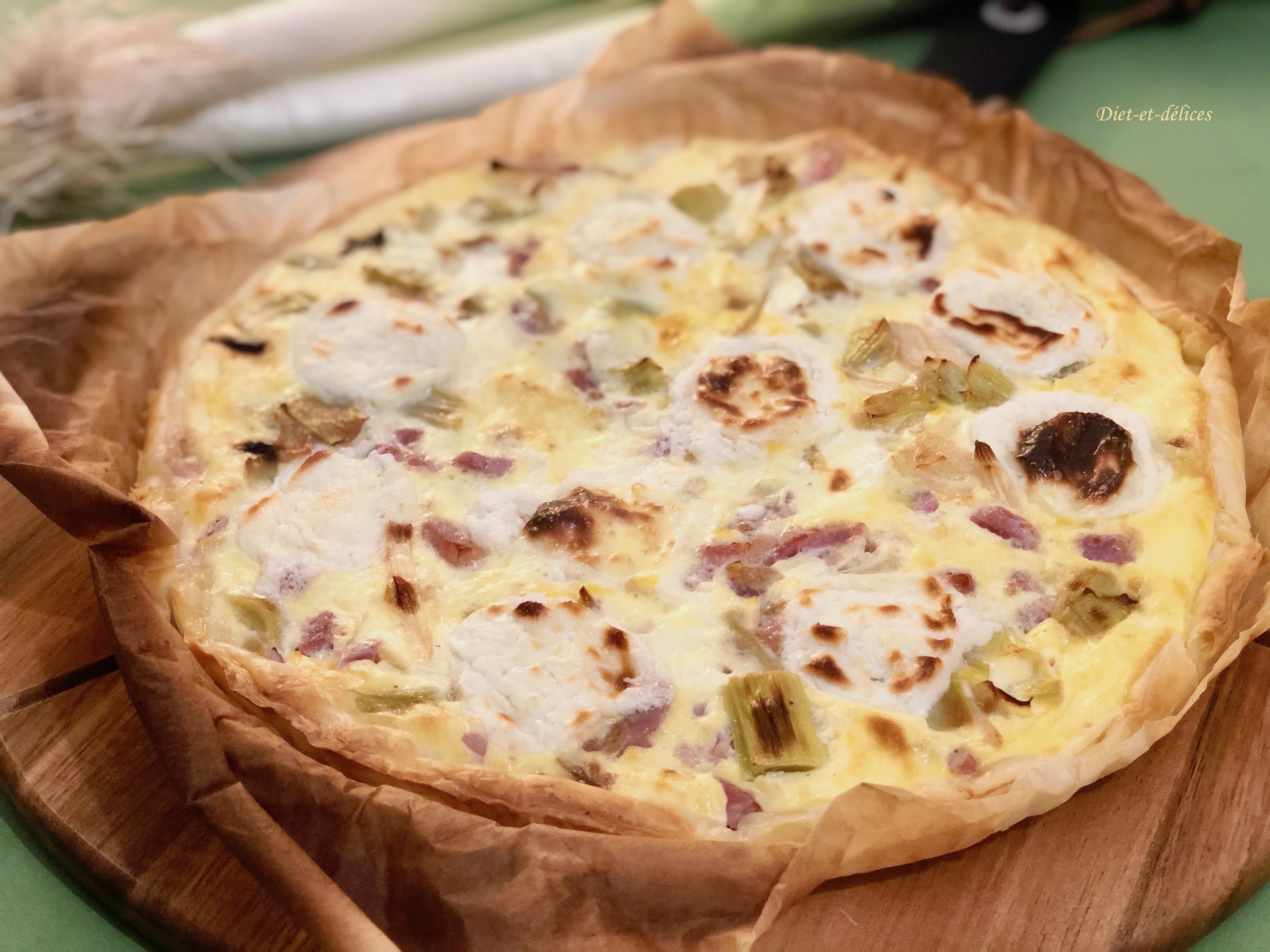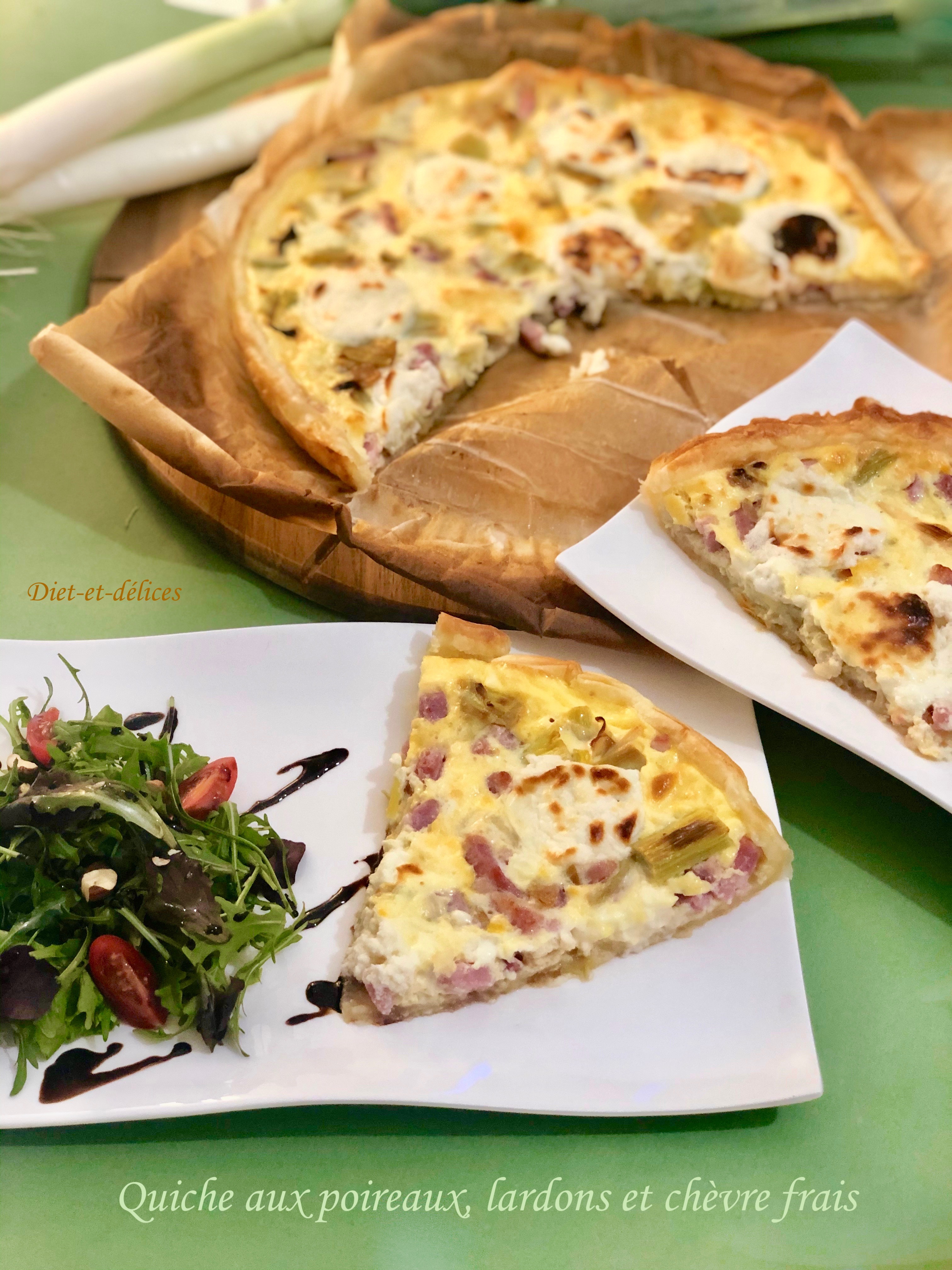 quiche, poireaux, lardons, quiche aux poireaux, chèvre frais, plat complet