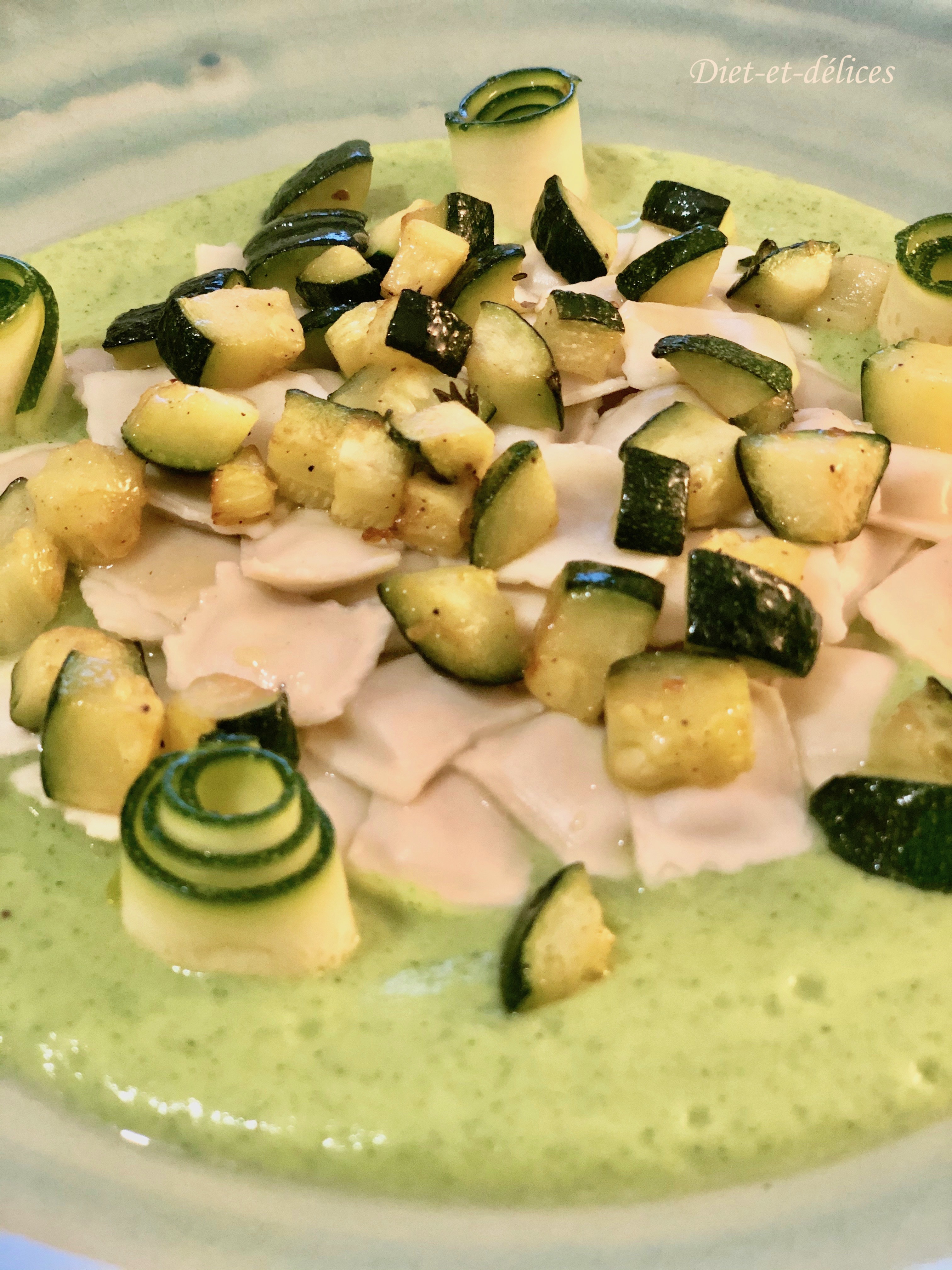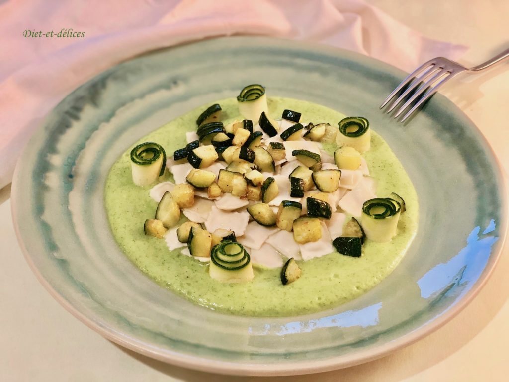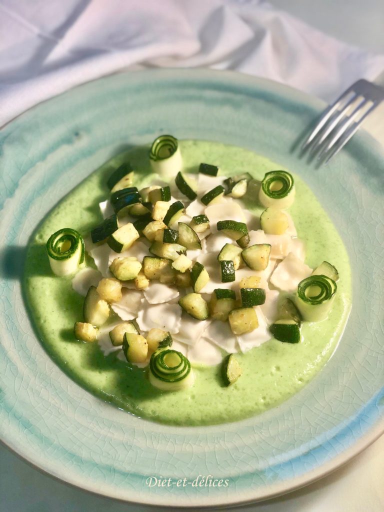 courgettes, ravioles, purée de courgettes, plat complet, ravioles au roquefort