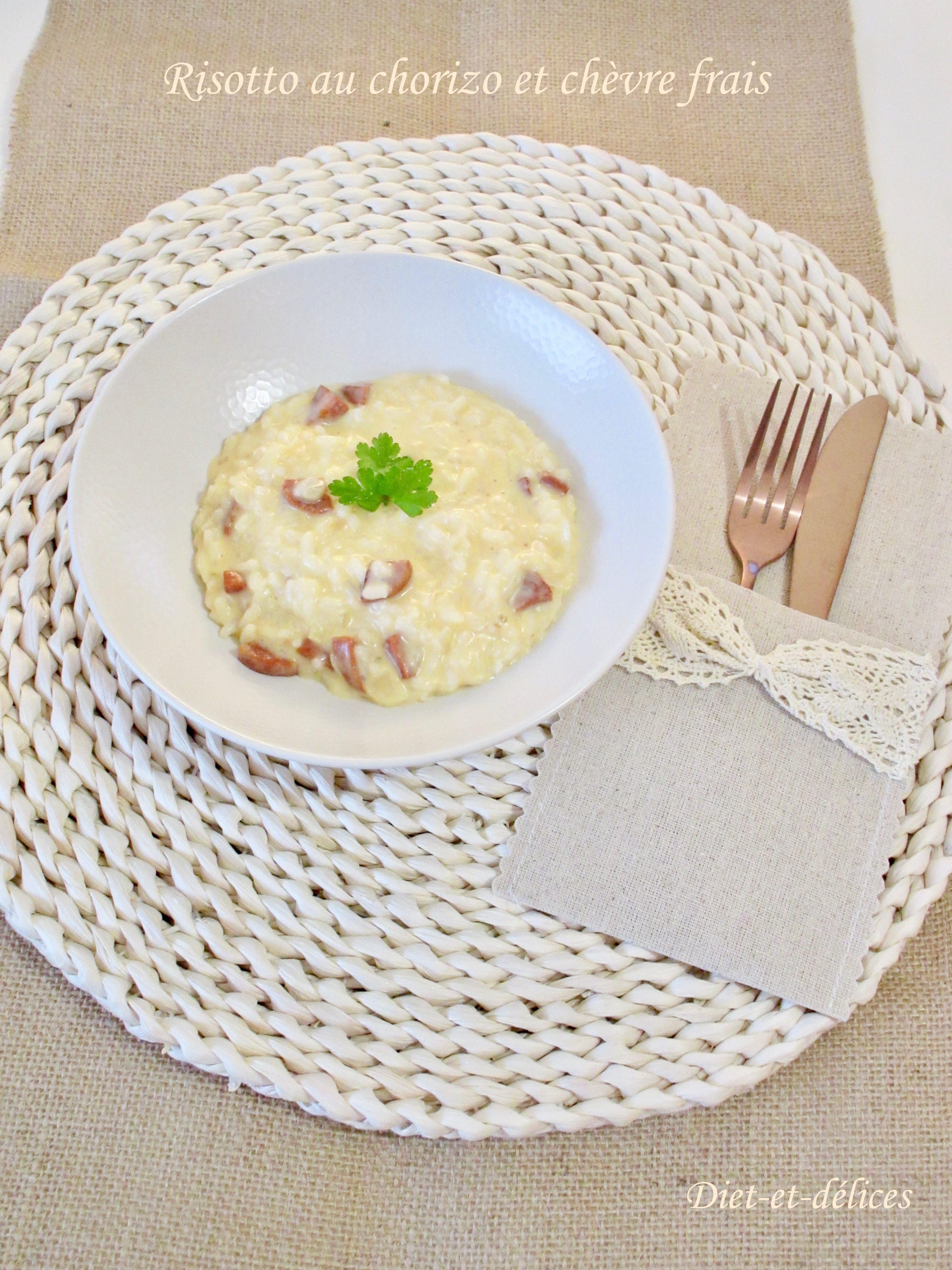 risotto, chorizo, riz, chèvre frais, fromage de chèvre, plat complet