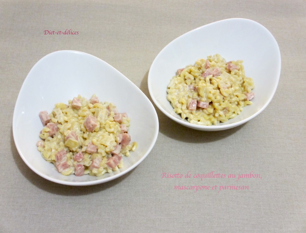 risotto, coquillettes, pâtes, risotto de coquillettes, coquilletto, jambon, risotto de coquillettes au jambon, mascarpone, talon de jambon, risotto de coquillettes au jambon et mascarpone, parmesan, plat complet