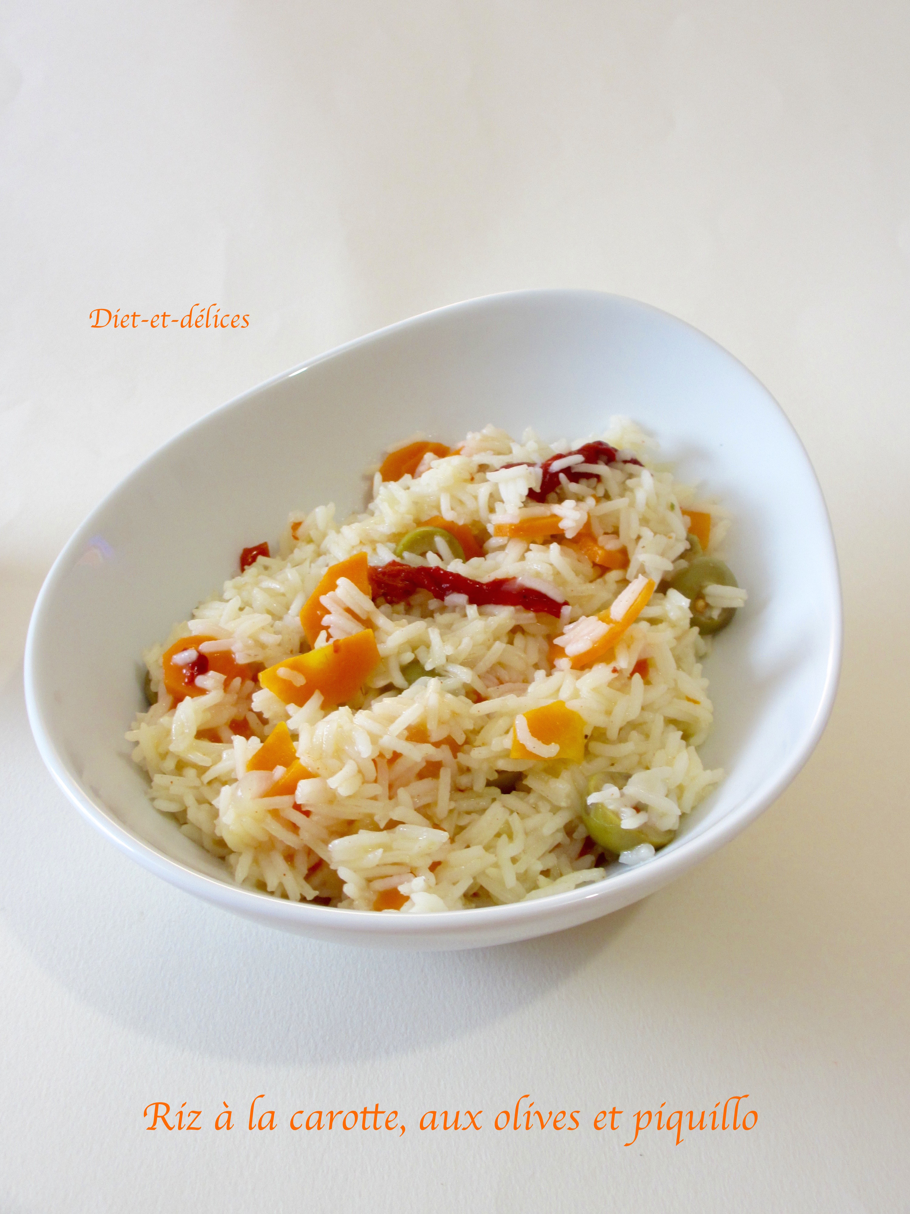 riz, légumes, féculents, riz à la carottes, olives, piquillo, riz à la carottes et aux olives, accompagnement, diététique