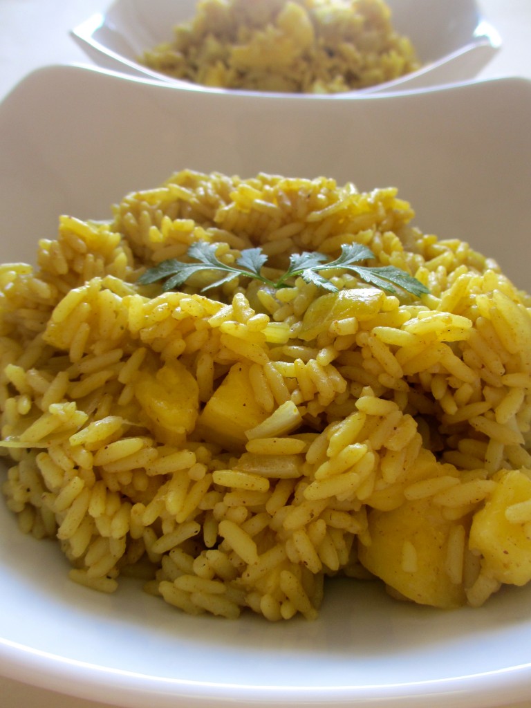 riz, riz au curry, ananas, riz à l’ananas, riz au curry et à l’ananas, curry, sucré salé, végétalien,diététique