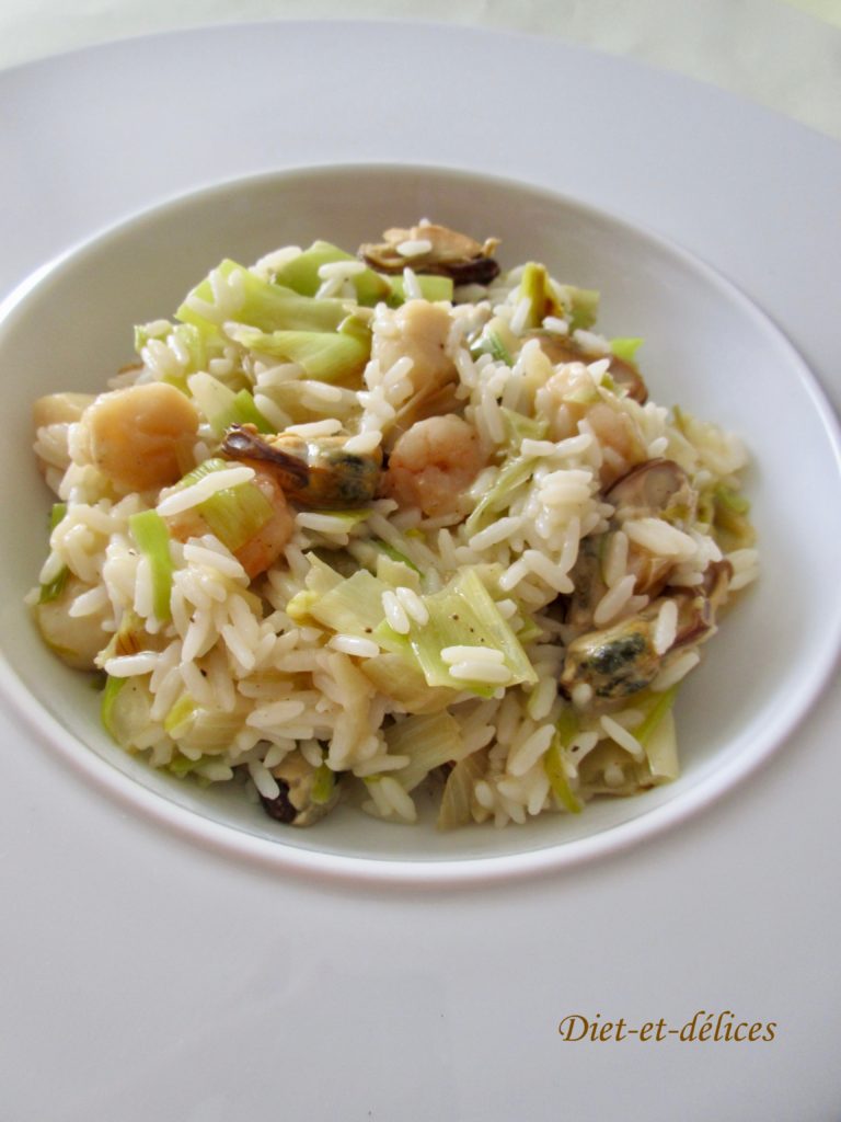riz, fruits de mer, poireaux, riz aux fruits de mer, sauce au beurre blanc, plat complet,