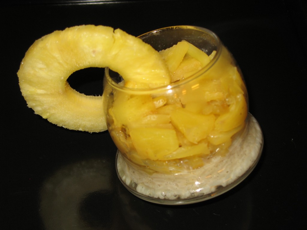 riz au lait, riz au lait de coco, lait de coco, ananas, ananas rôti, vanille, rhum, dessert