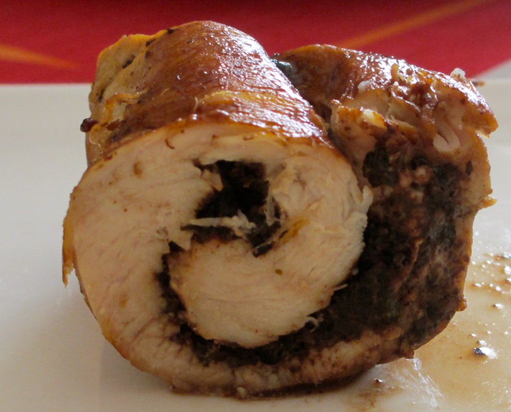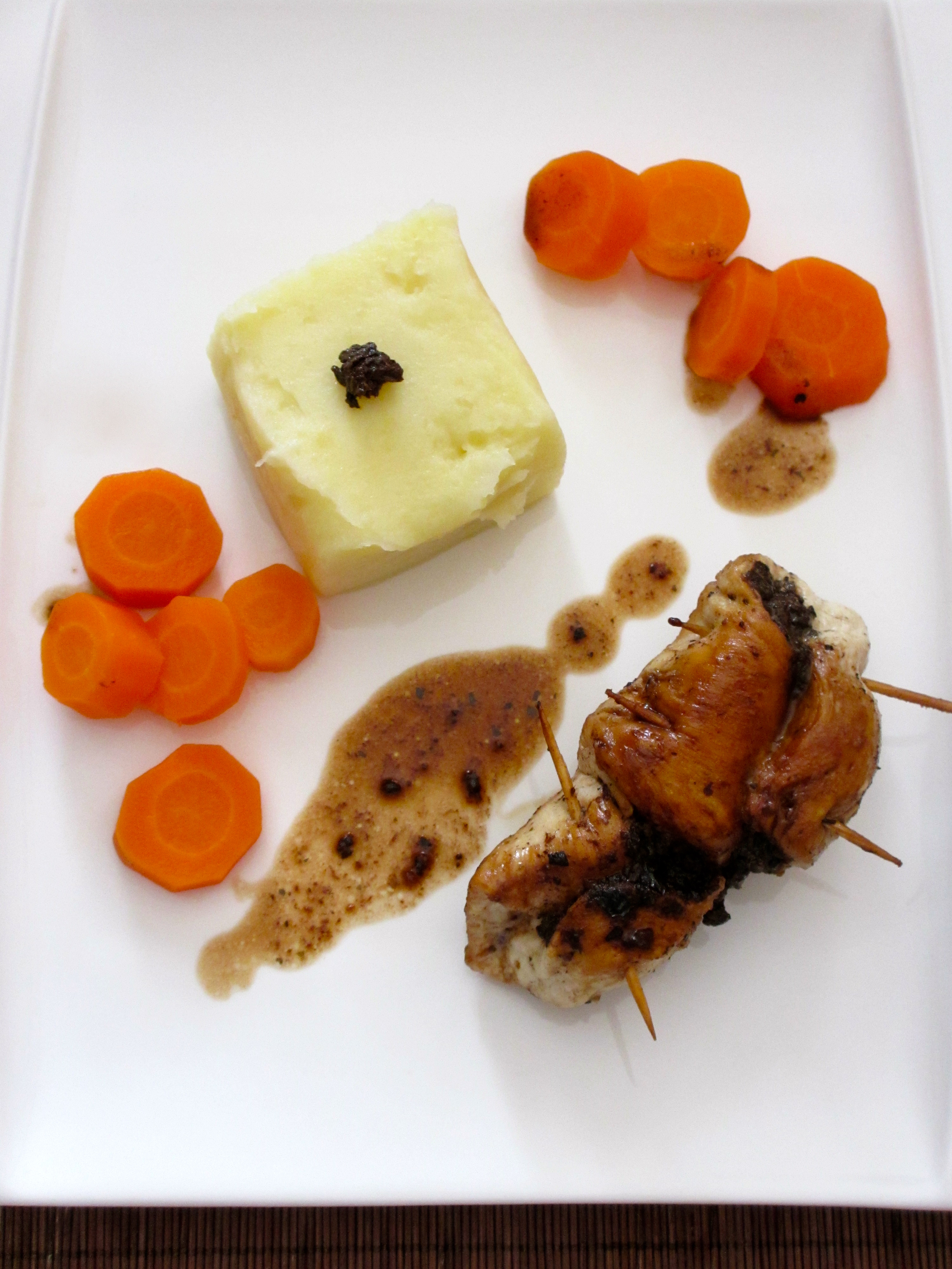 - Les garnir de l’olivade à la truffe. Piquer les filets avec des petites piques en bois pour maintenir la garniture.