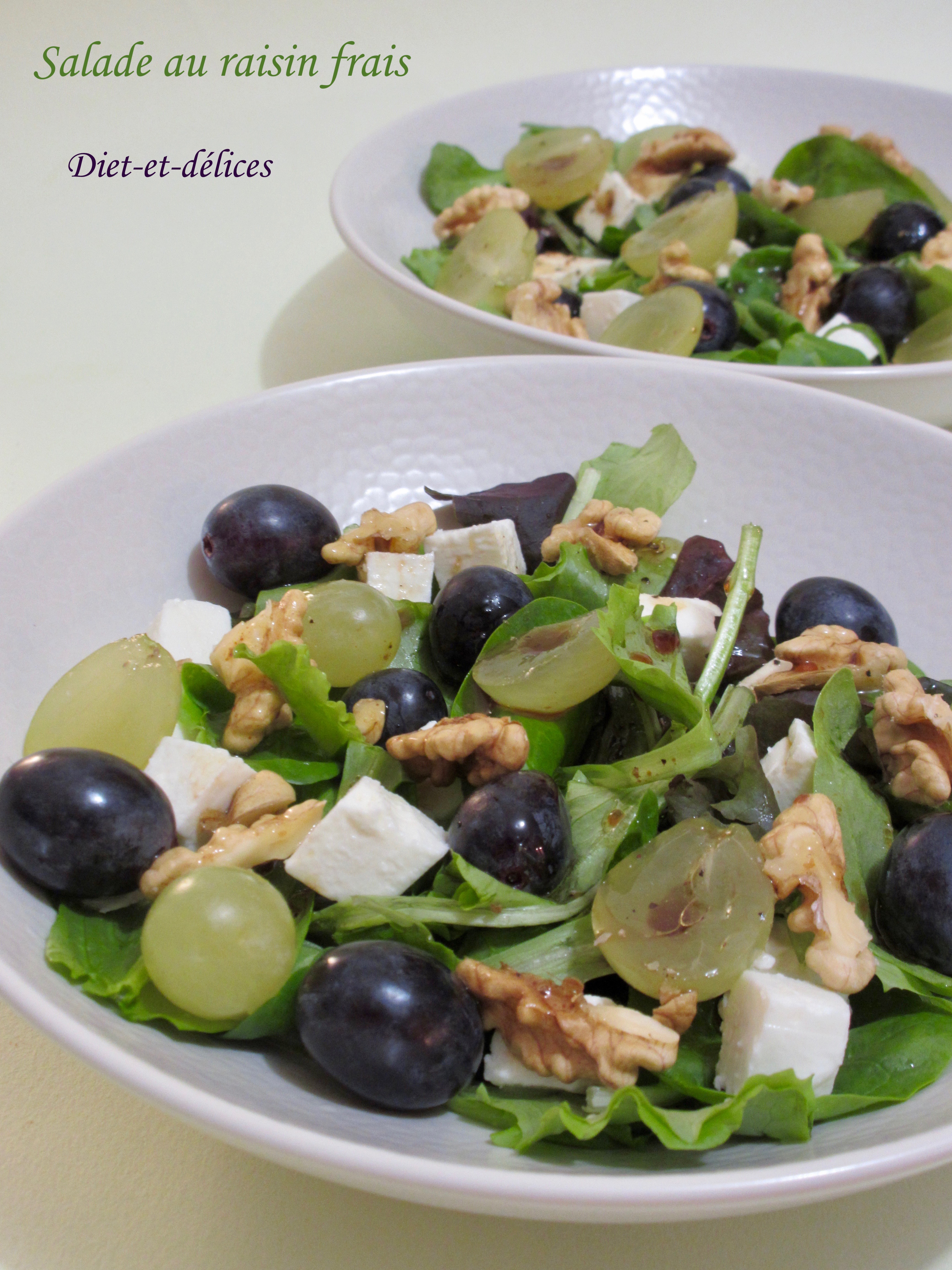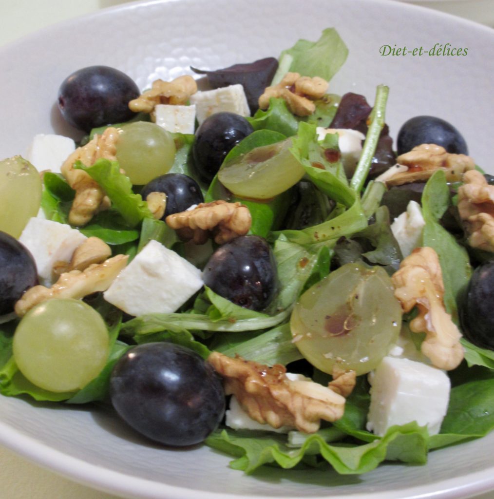 salade, raisin, raisin frais, feta, noix