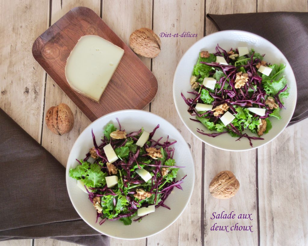 salade, chou rouge, chou kale, jeunes pousses de chou kale, ossau iraty, noix, huile de noix