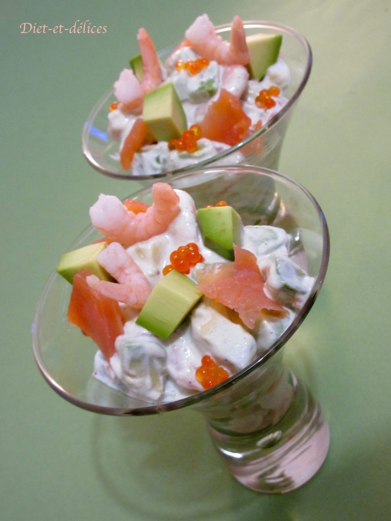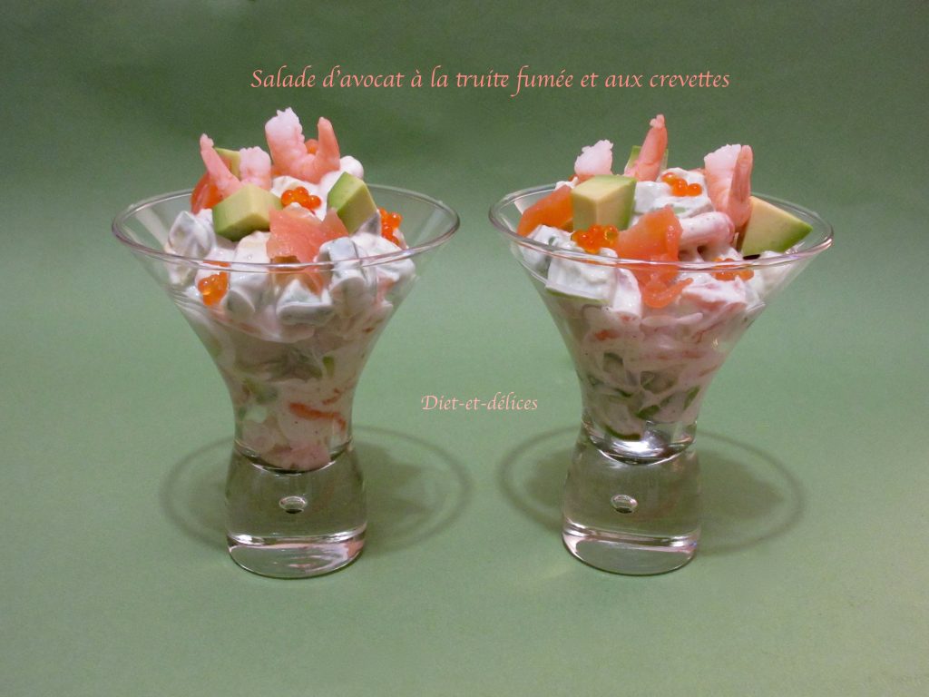 avocat, truite fumée, oeufs de poisson, salade d’avocat, diététique, fromage blanc, salade d’avocat aux crevettes, crevettes, entrée