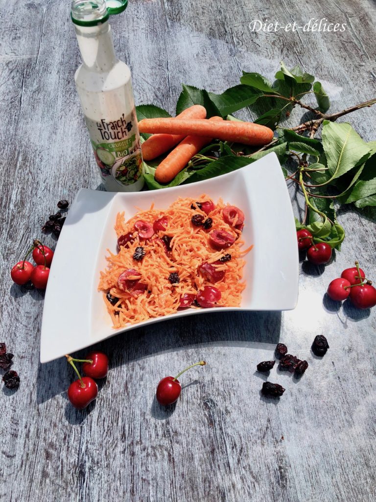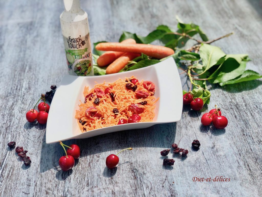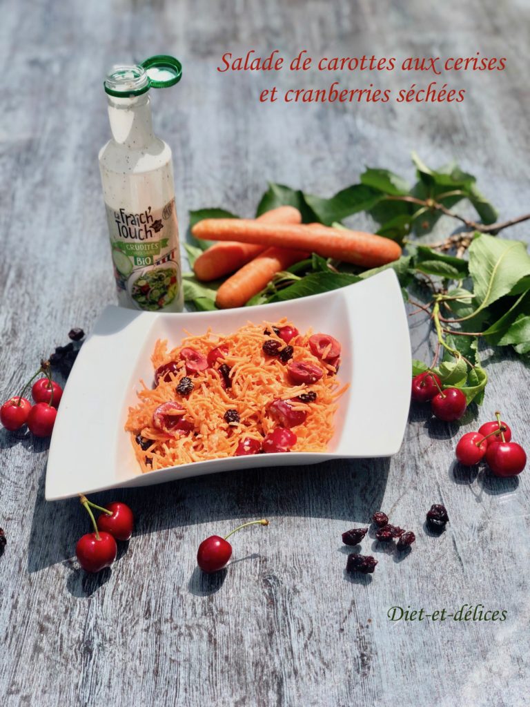 crudités, salade de carottes, carottes, cerises, cranberries, cranberries séchées