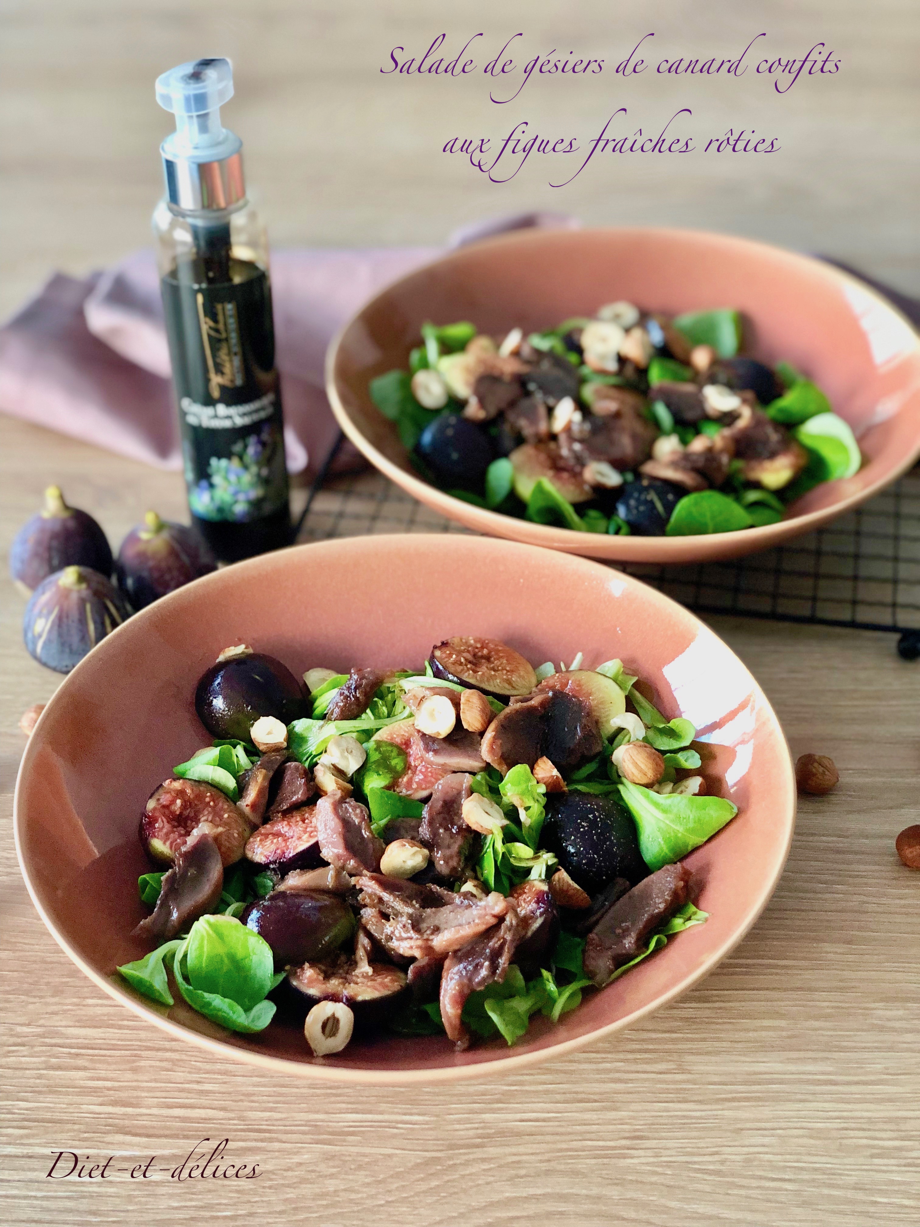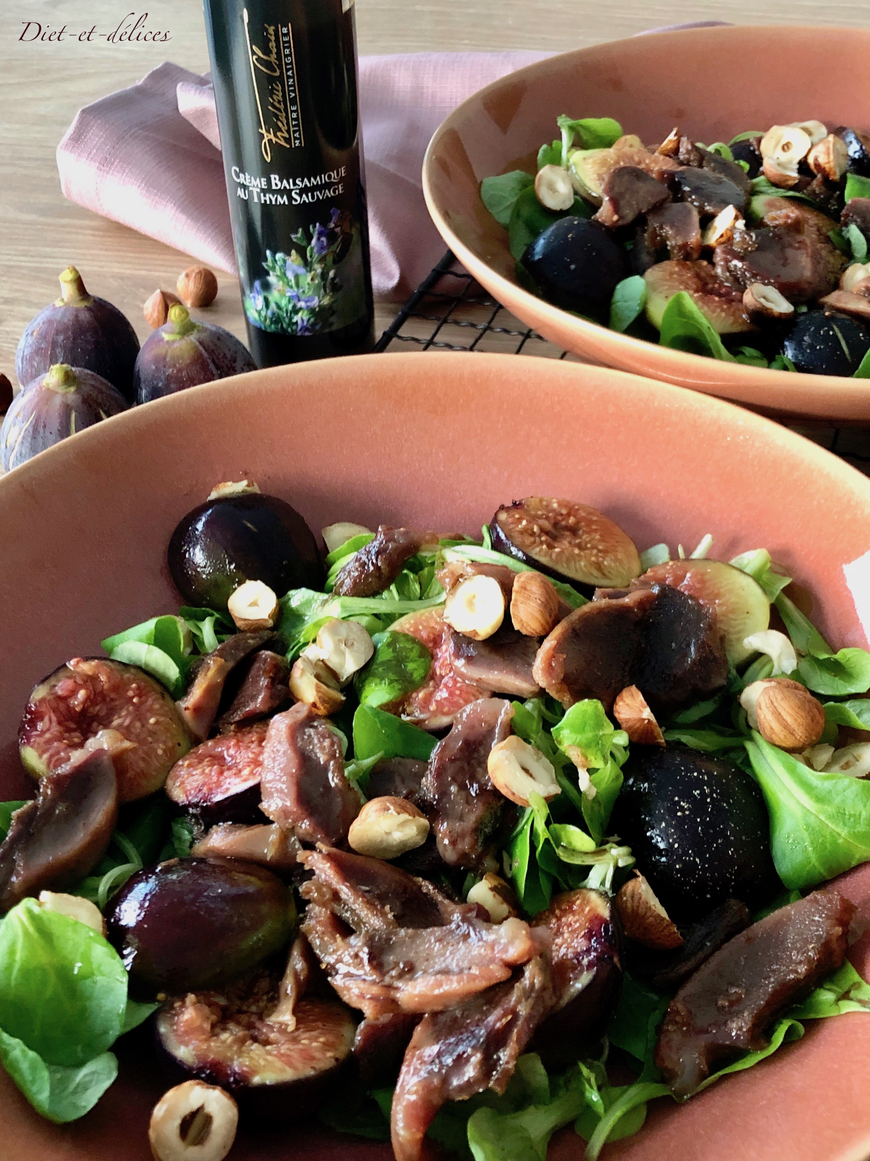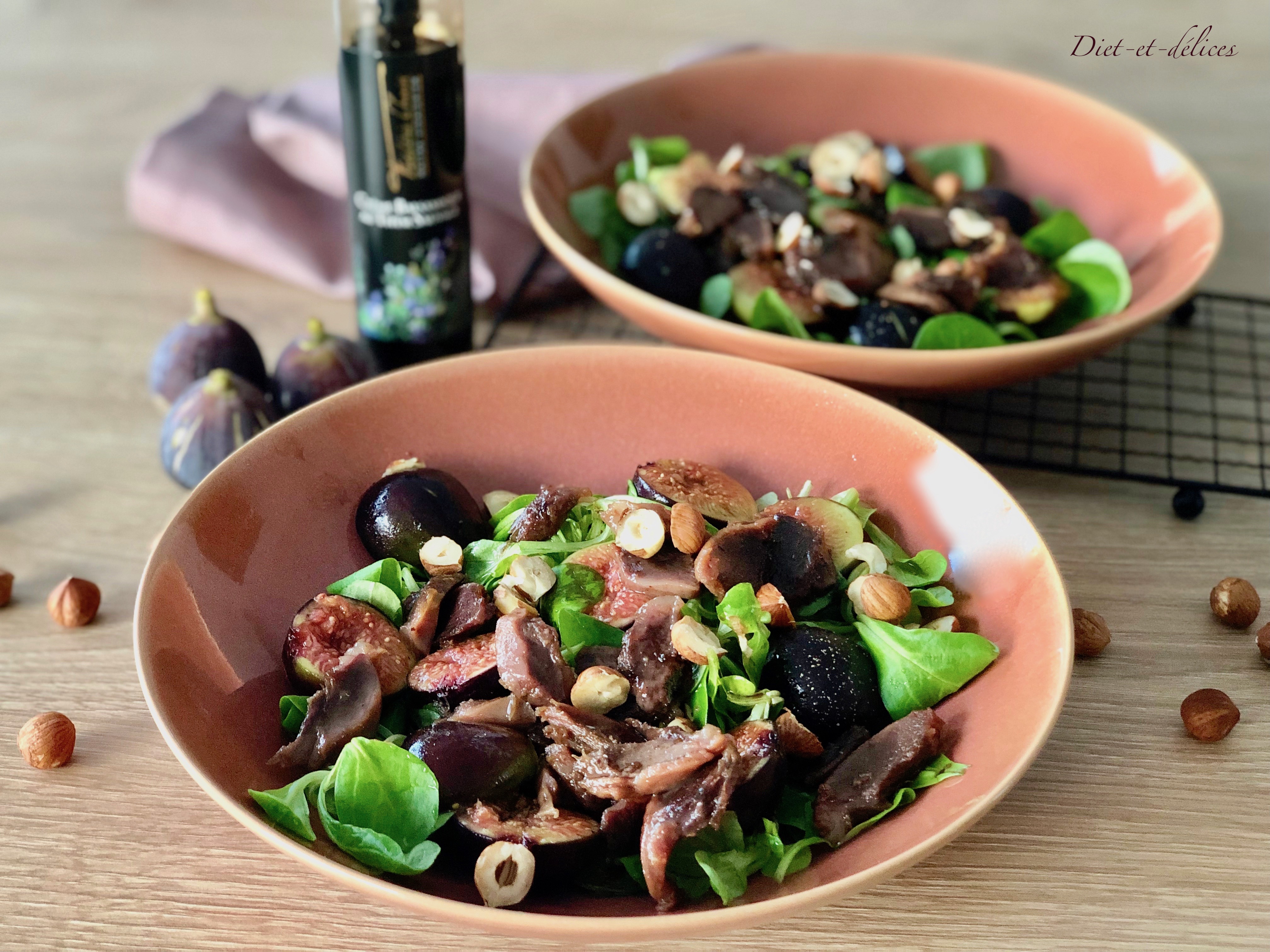 mâche, salade, gésiers, mâche aux gésiers, figues, gésiers de canard, noisettes, sucré salé, canard