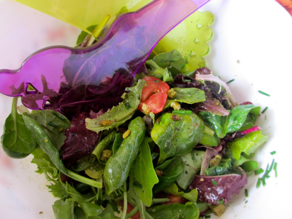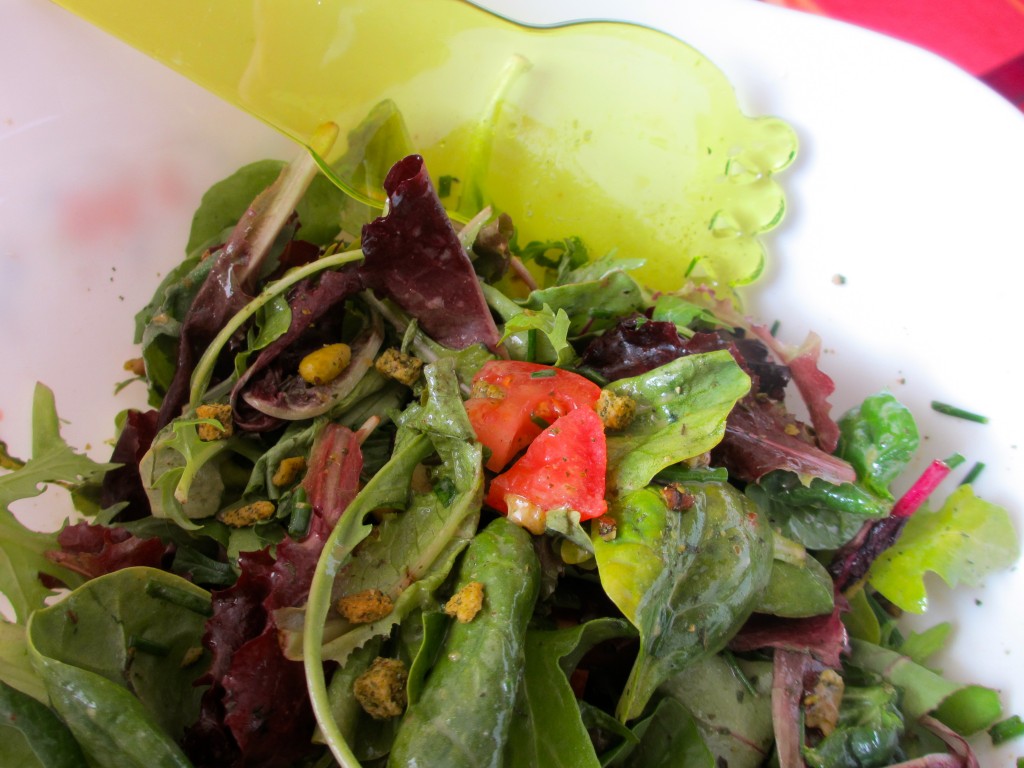 salade, salade verte,jeunes pousses, tomate, vinaigrette, vinaigrette allégée