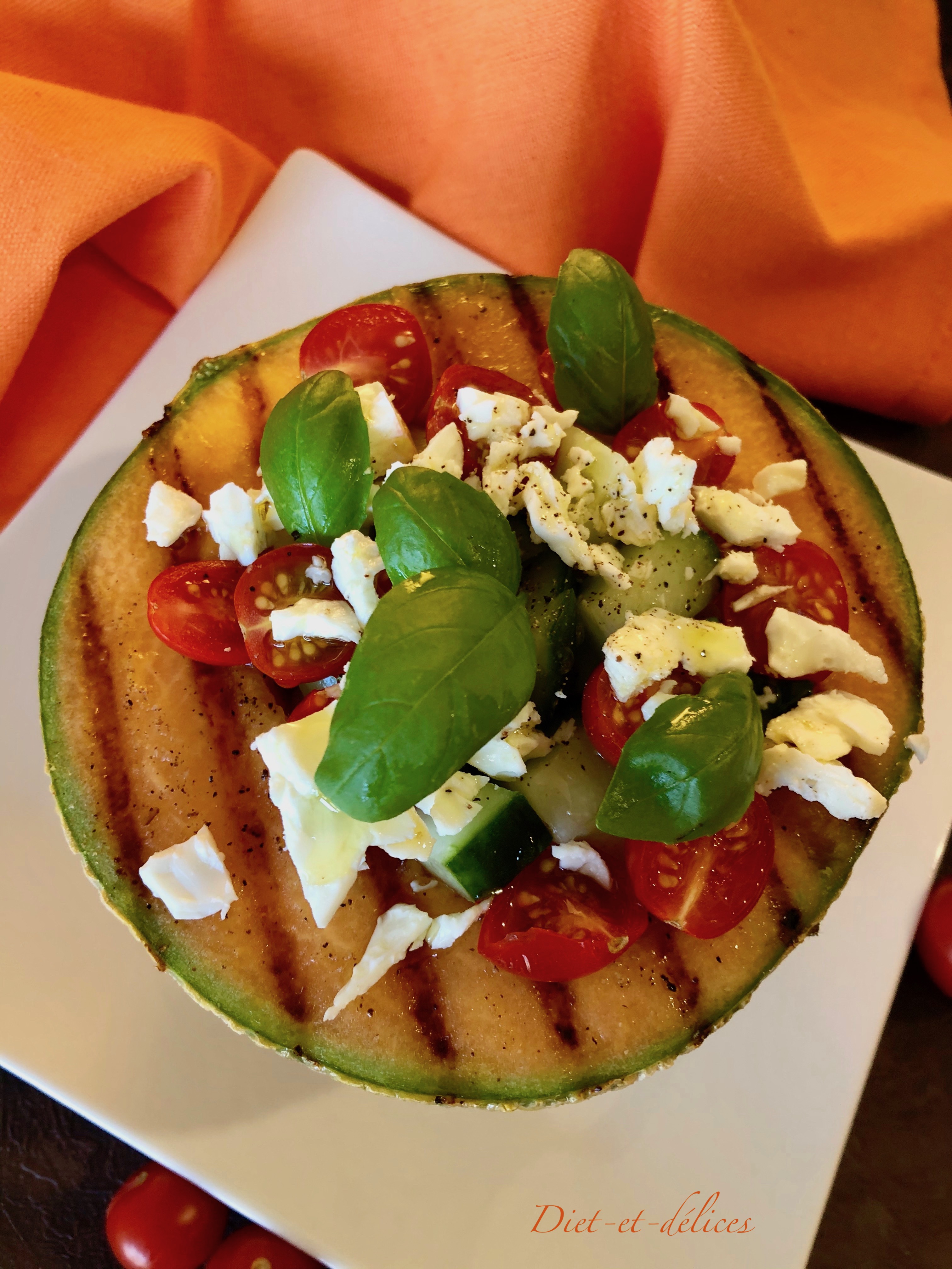 - – salade de melon grillé, chiffonnade de jambon et feta