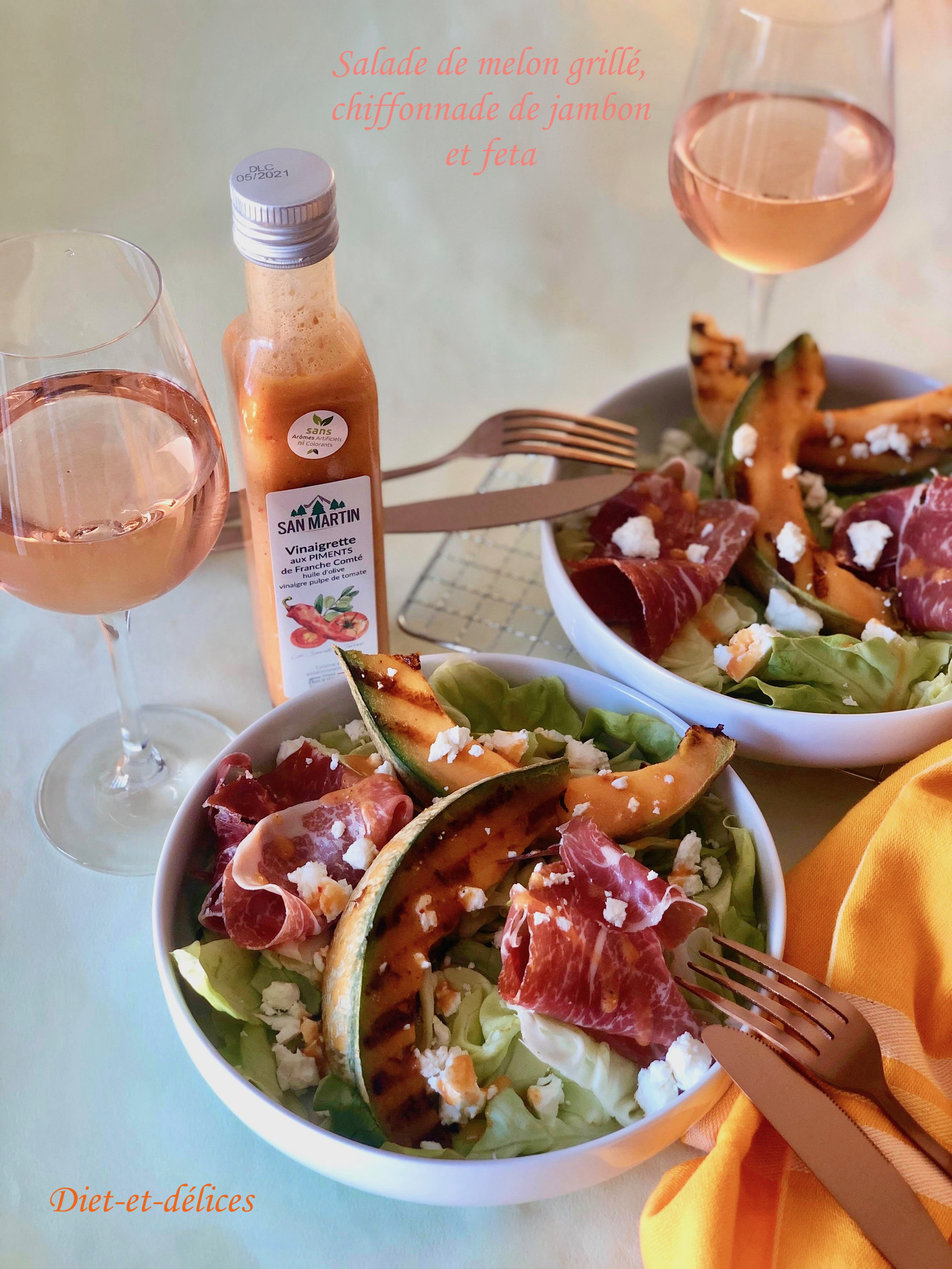 salade, melon, feta, sucré salé, jambon