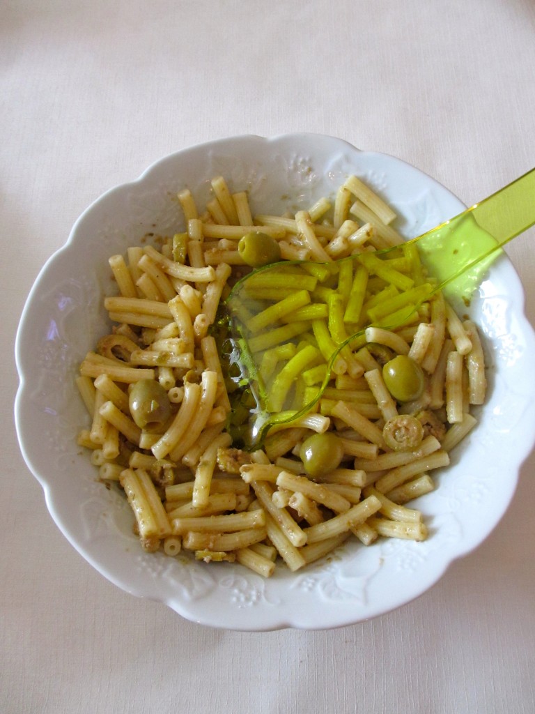 salade de pâtes, olives, accompagnement, olives vertes, tapenade, barbecue, macaronis, huile d’olive