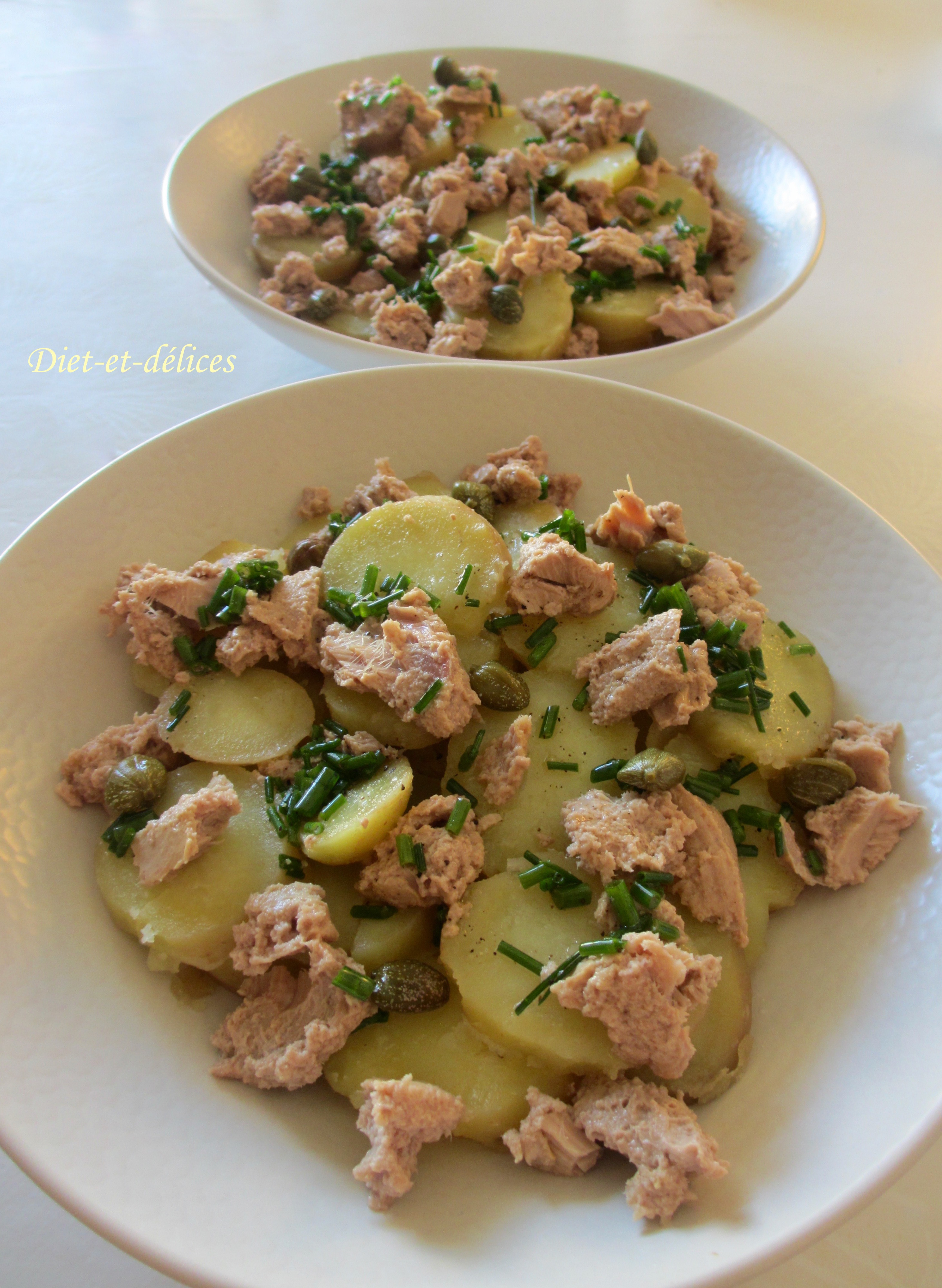salade, pommes de terre, thon, câpres, ciboulette, plat complet