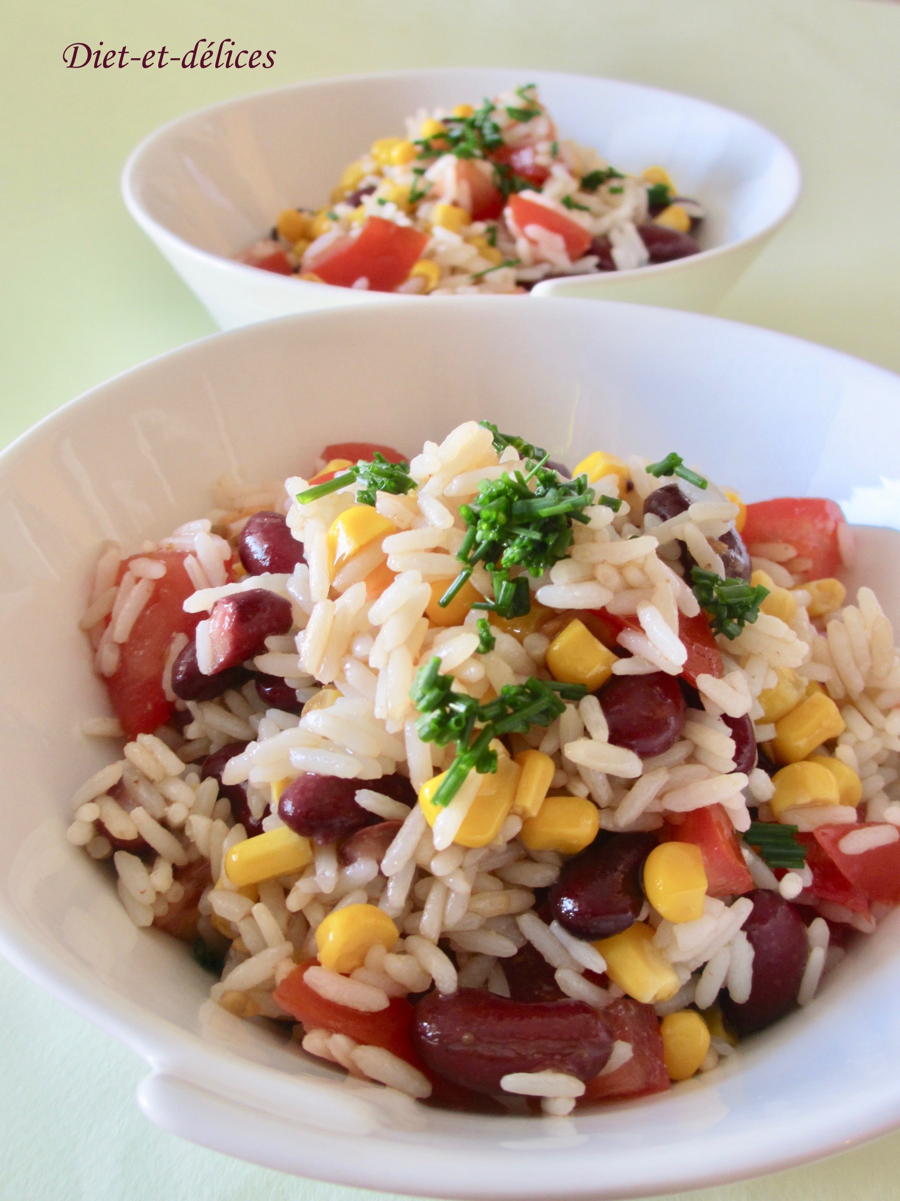 riz, salade de riz, cuisine mexicaine, maïs , haricots rouges, végétarien