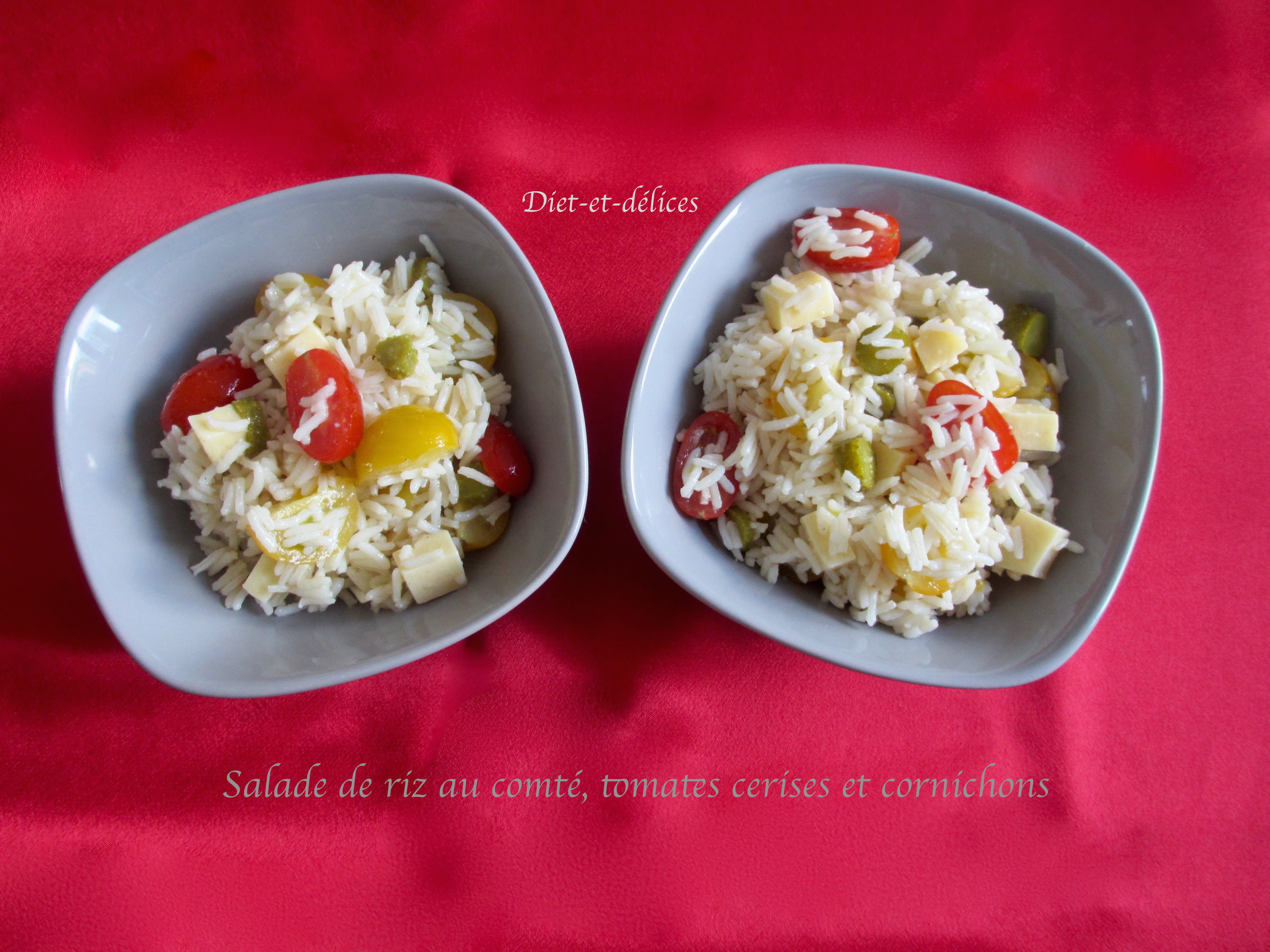 riz, salade de riz, tomates cerises, comté, salade de riz au comté, cornichons, féculents, barbecue, accompagnement