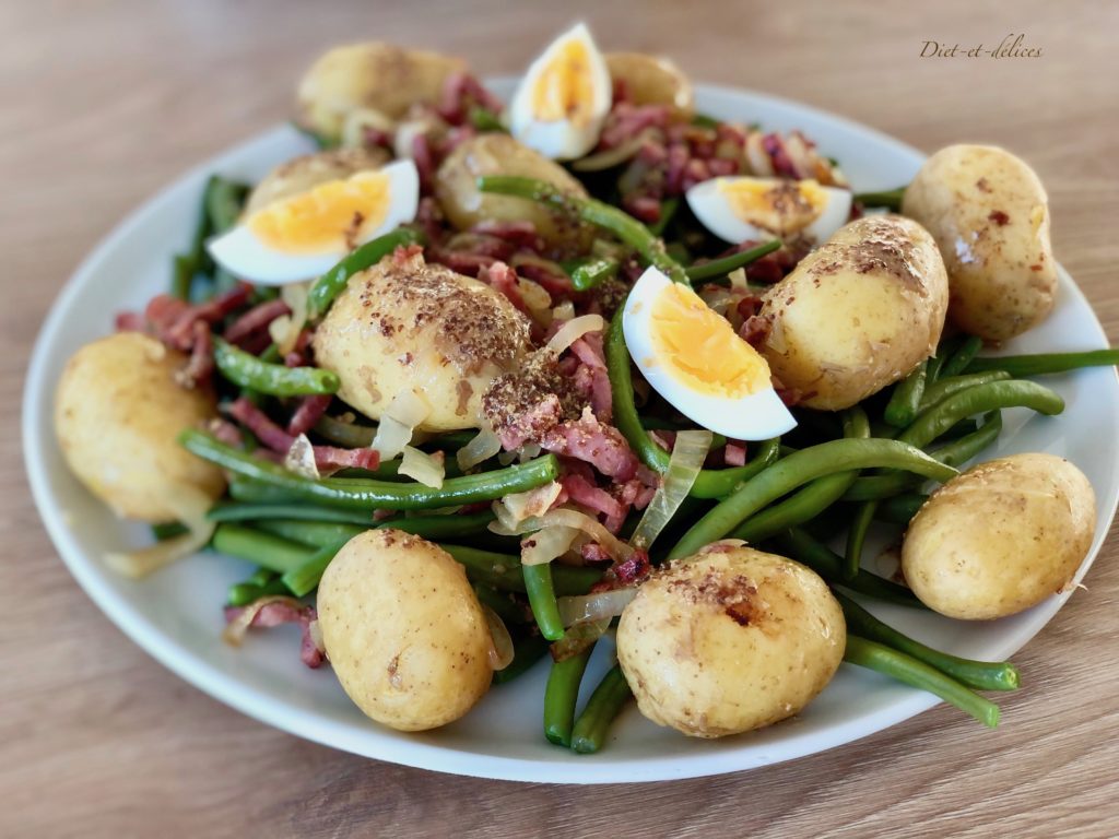 salade , salade liégeoise, haricots verts, pommes de terre, lardons, oignon