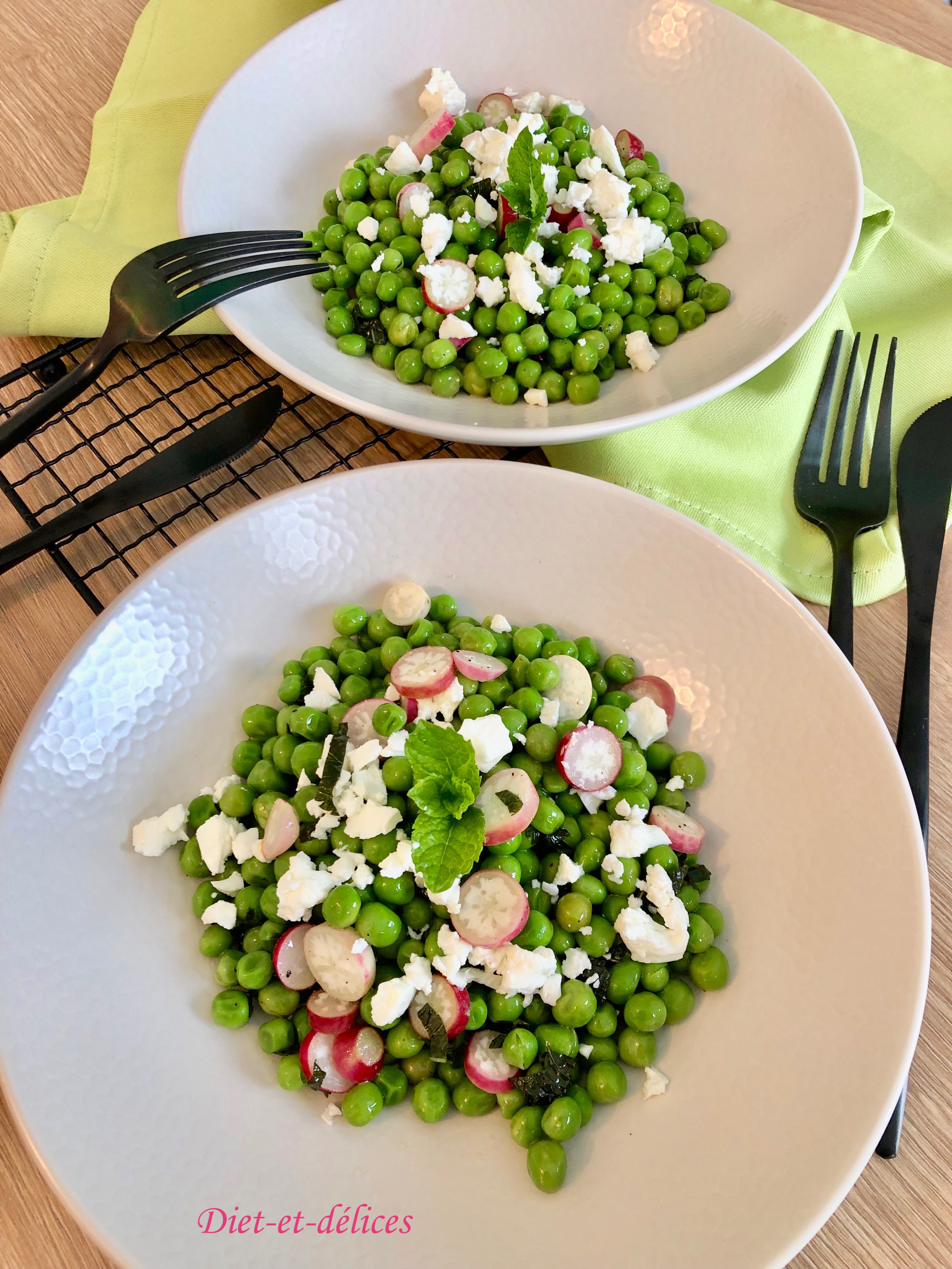 petit pois, radis, feta, petit pois à la menthe, menthe, légumes
