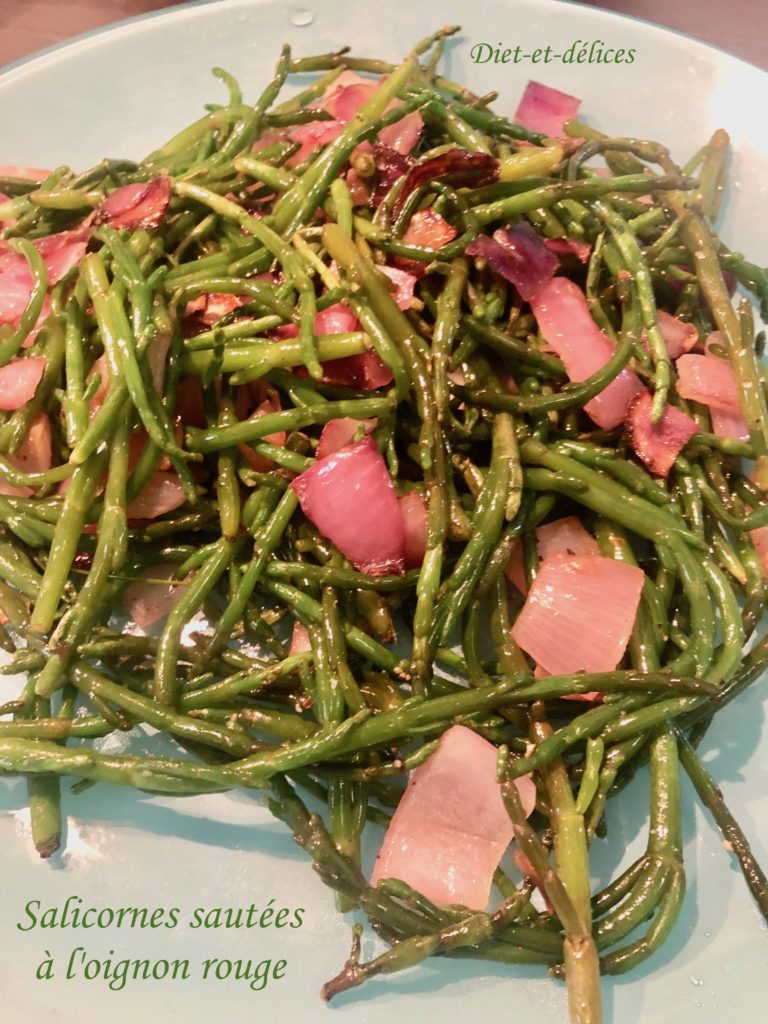 salicornes, oignon rouge, poêlée, salicornes sautées, oignon