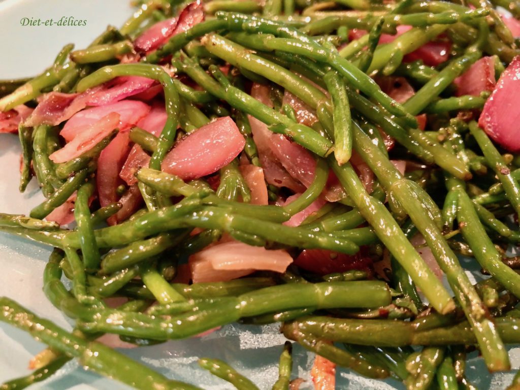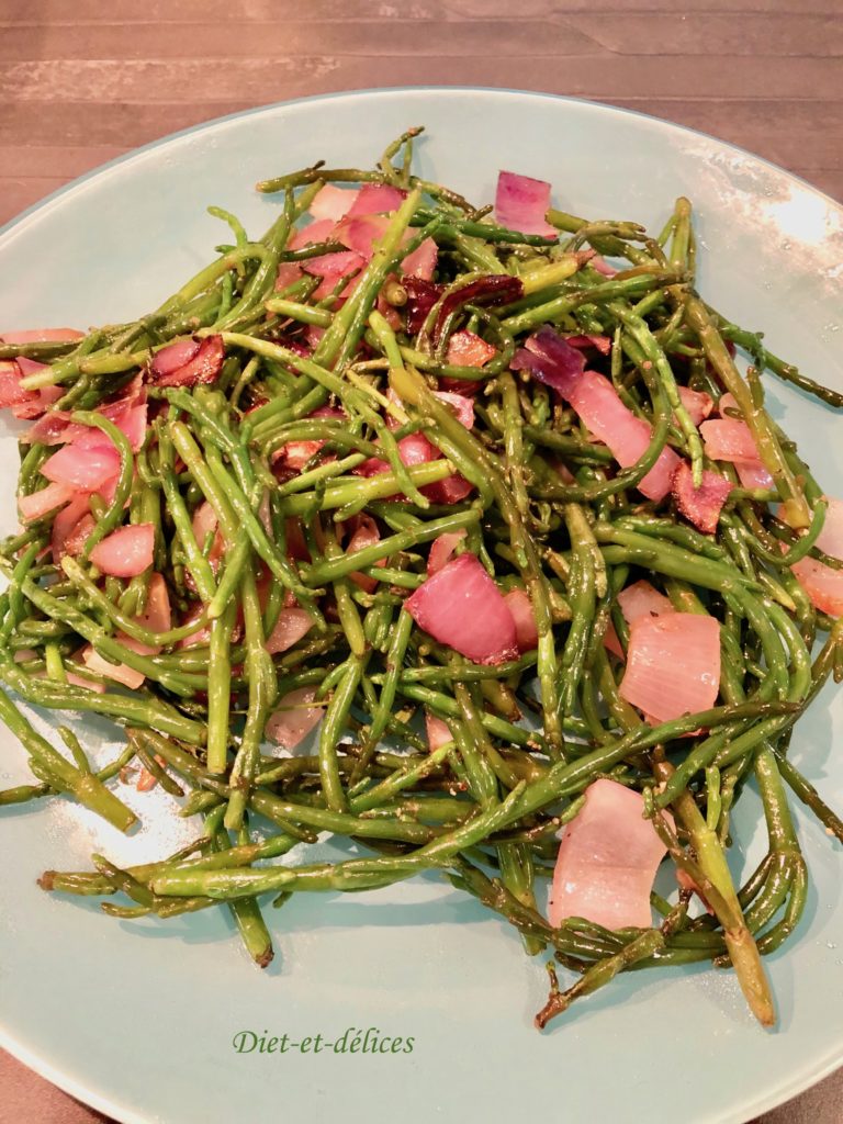 salicorne, oignon, poêlée, salicorne poêlée, oignon rouge, plante maritime