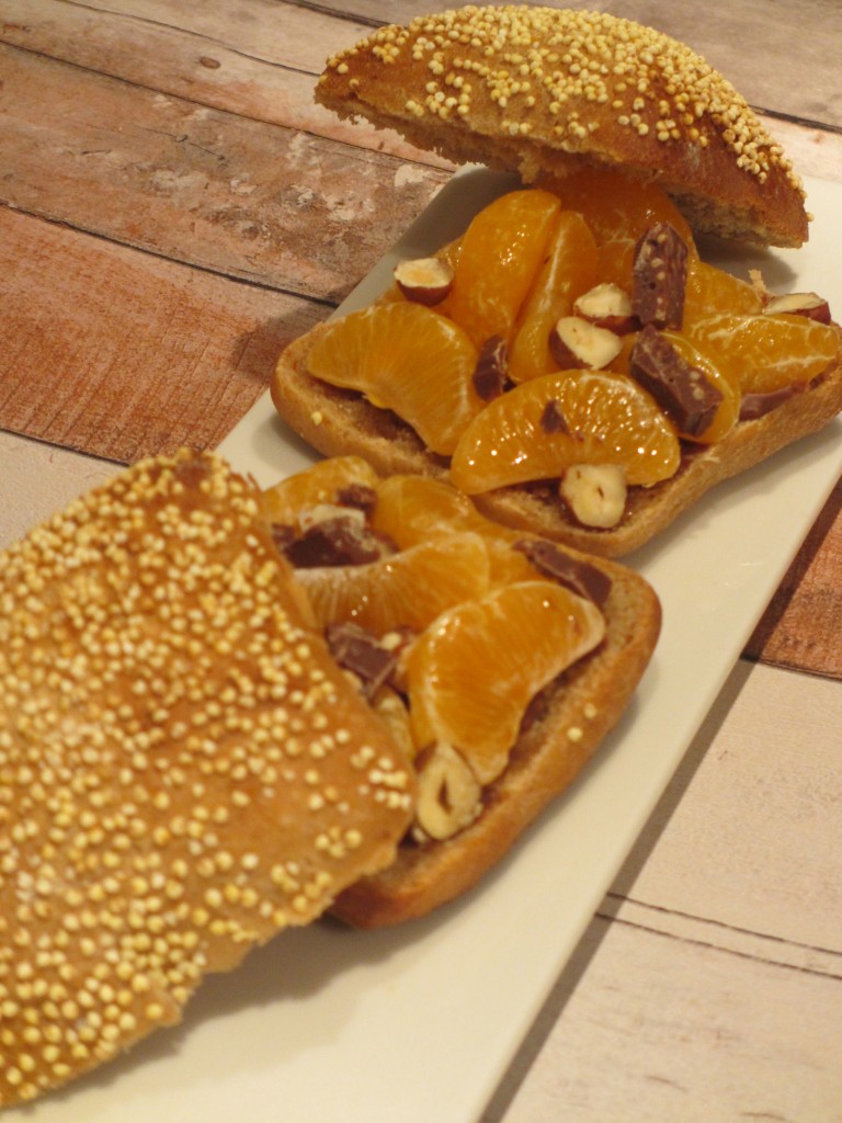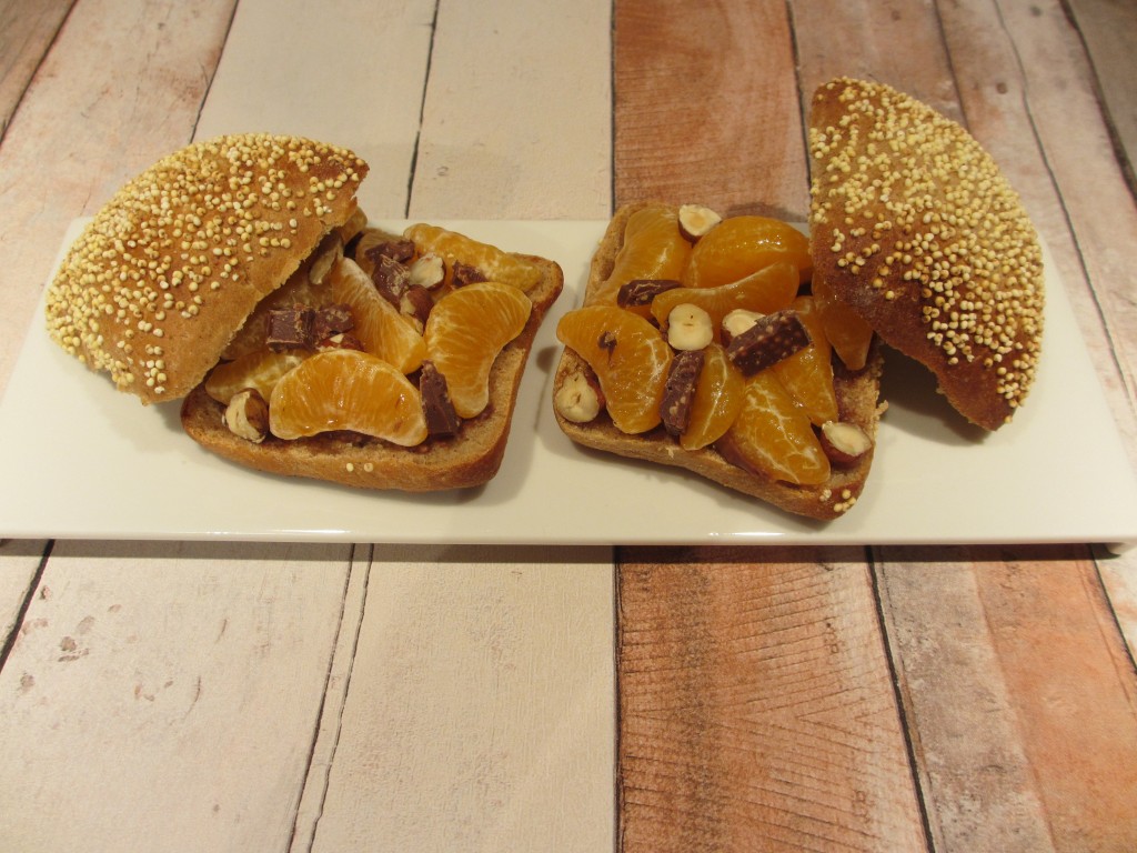 dessert, clémentines, sandwich, sandwich sucré, pain au spéculoos, chocolat , chocolat à l’orange, noisettes, pain, pain sucré, dessert aux fruits, agrumes , dessert minute, plateau télé,mandarines