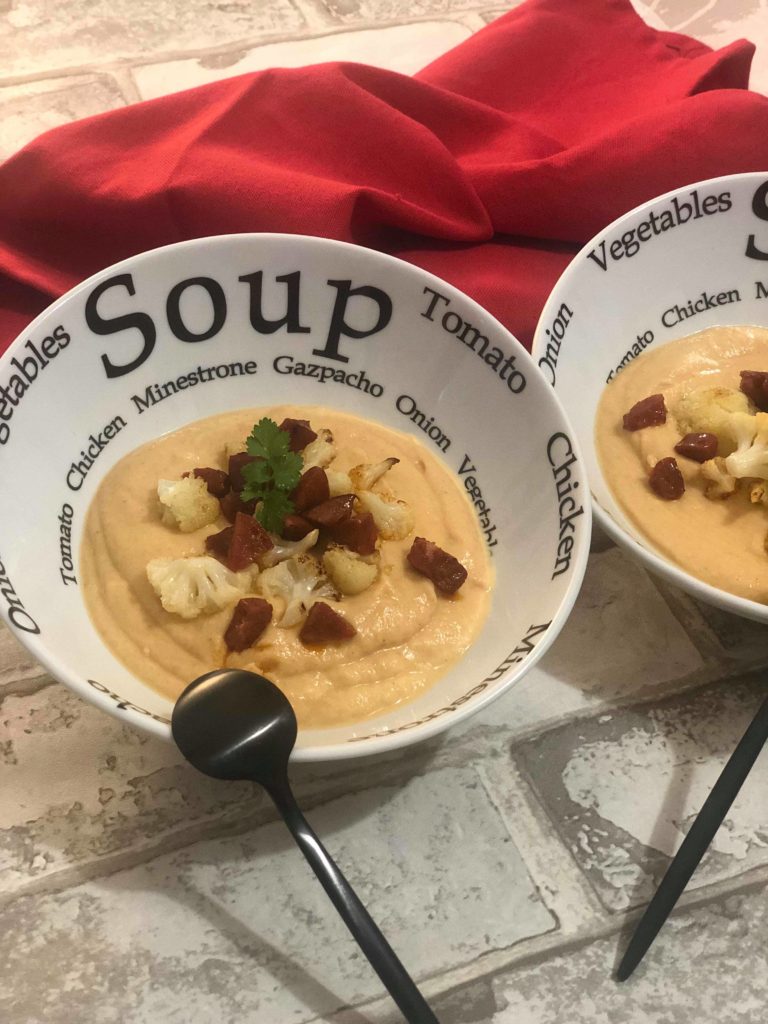 Accueil » Recettes » Légumes » Soupe de chou-fleur au chorizo