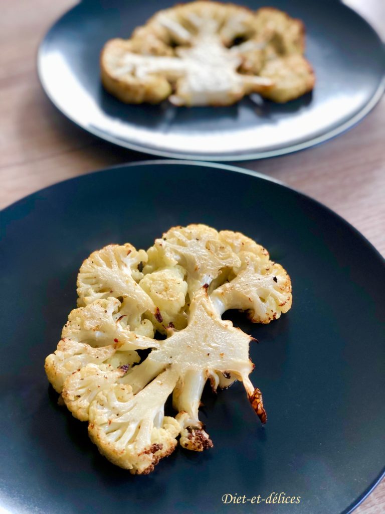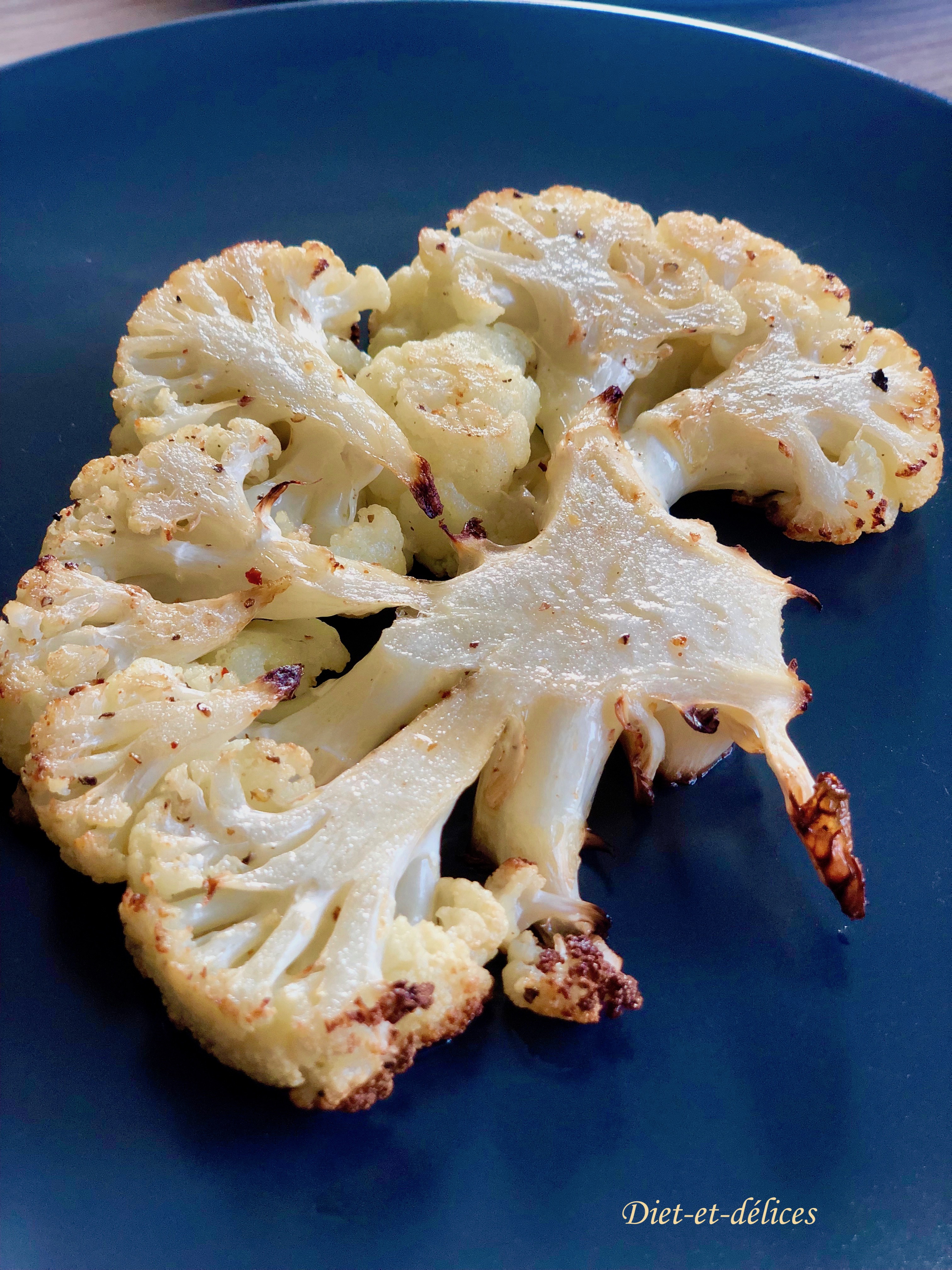 Il y a maintes façons de cuisiner le chou-fleur. La saveur du chou-fleur rôti au four est très bonne et c’est très joli présenté ainsi dans les assiettes.
