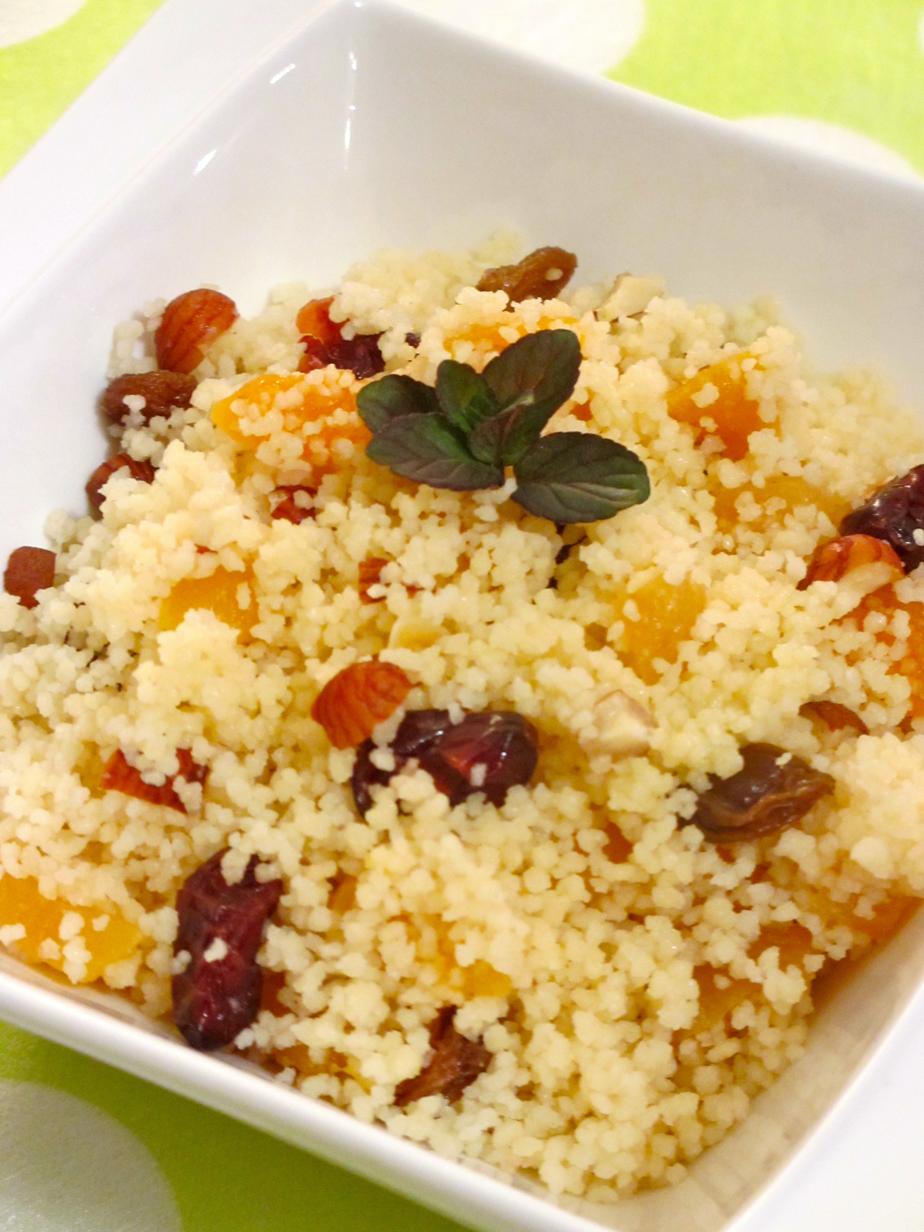 taboulé, taboulé aux fruits secs, fruits secs, barbecue, salade, abricots secs, raisins secs, sucré salé, canneberge, cranberry, noisettes, semoule